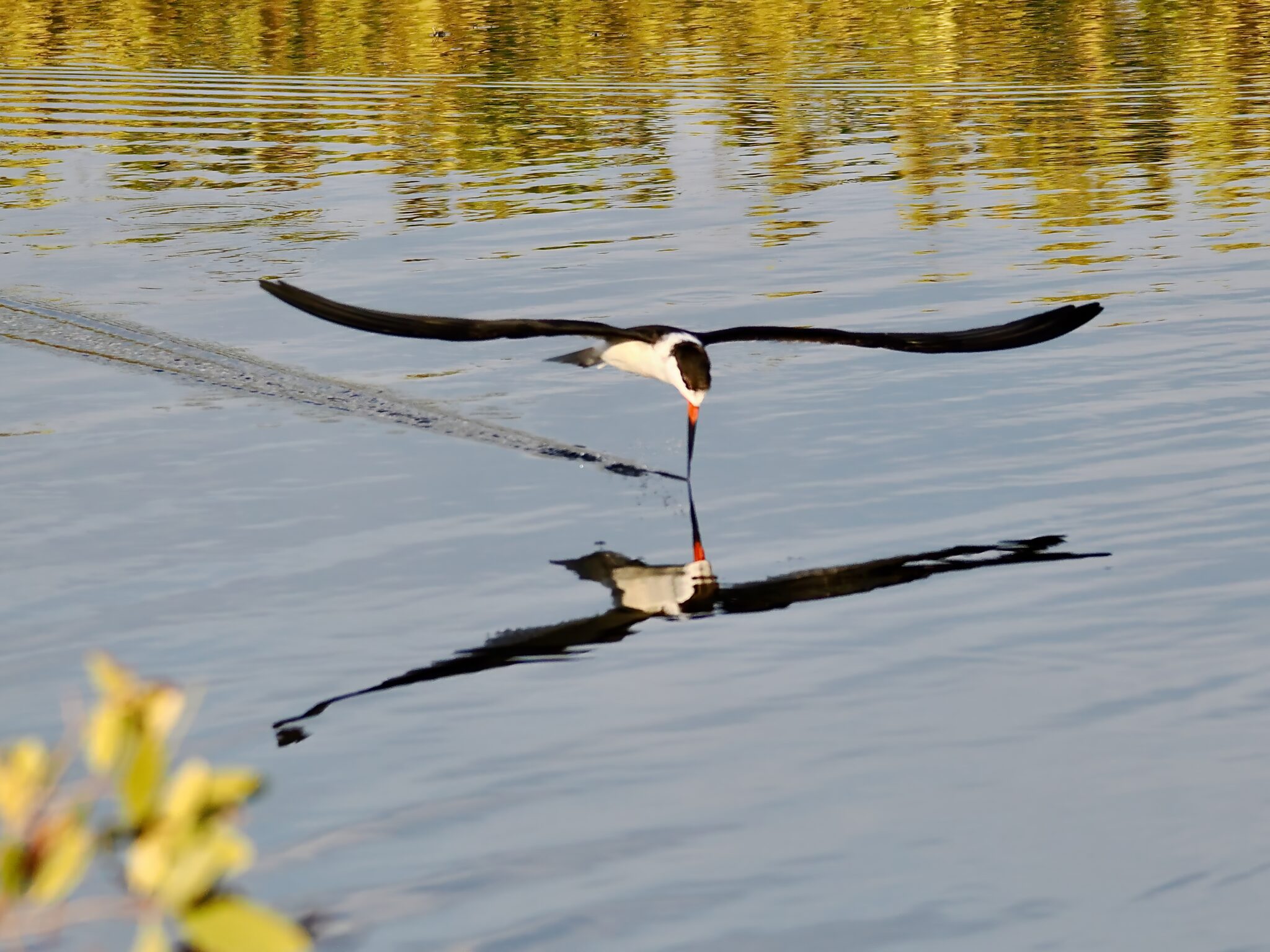 I’ve seen Black Skimmers many times, but rarely have I observed them skimming, nearby, over smooth reflective water, late in the day, during the golden hour. Watching and photographing this one was an amazing experience!