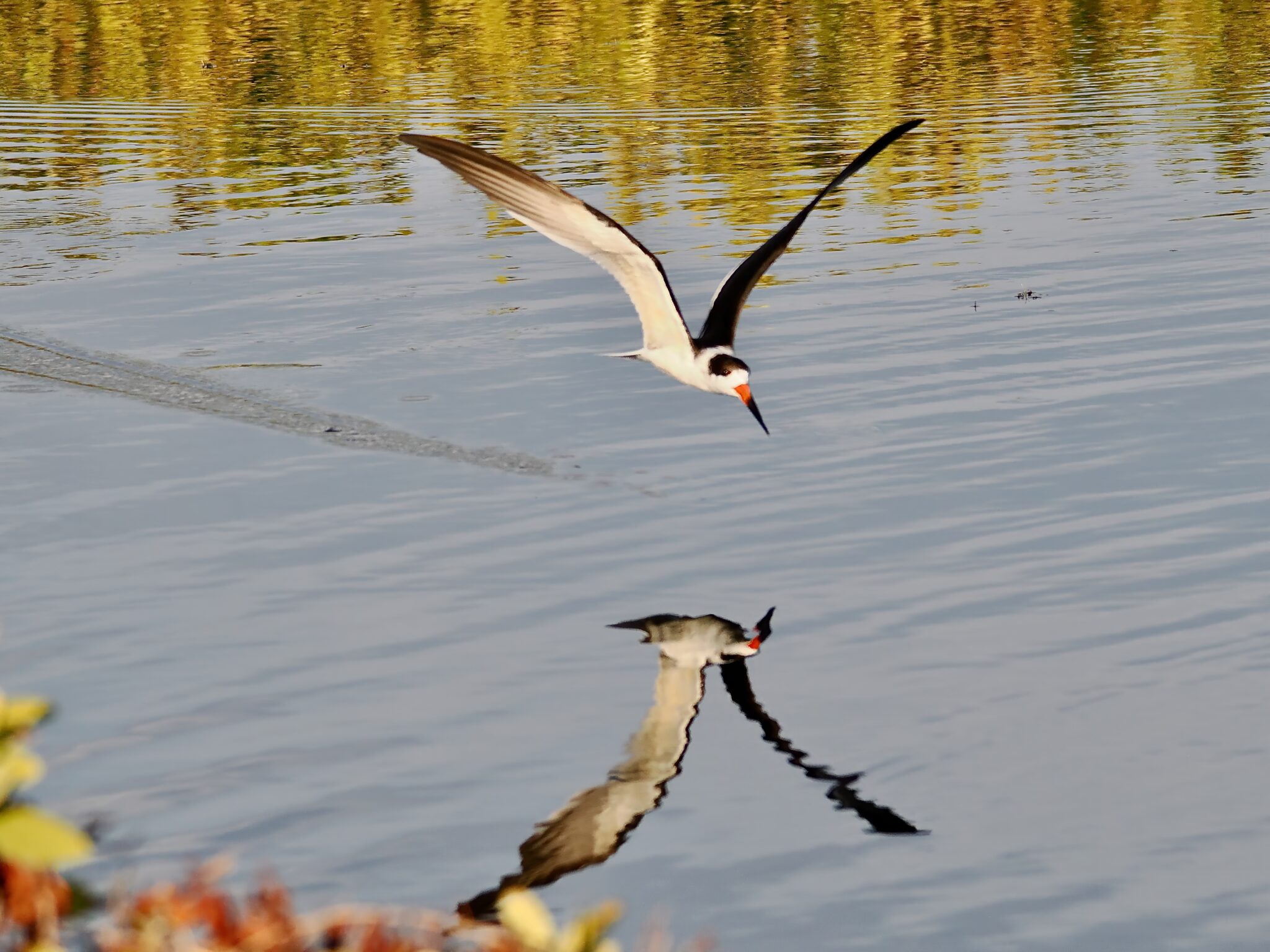 I’ve seen Black Skimmers many times, but rarely have I observed them skimming, nearby, over smooth reflective water, late in the day, during the golden hour. Watching and photographing this one was an amazing experience!