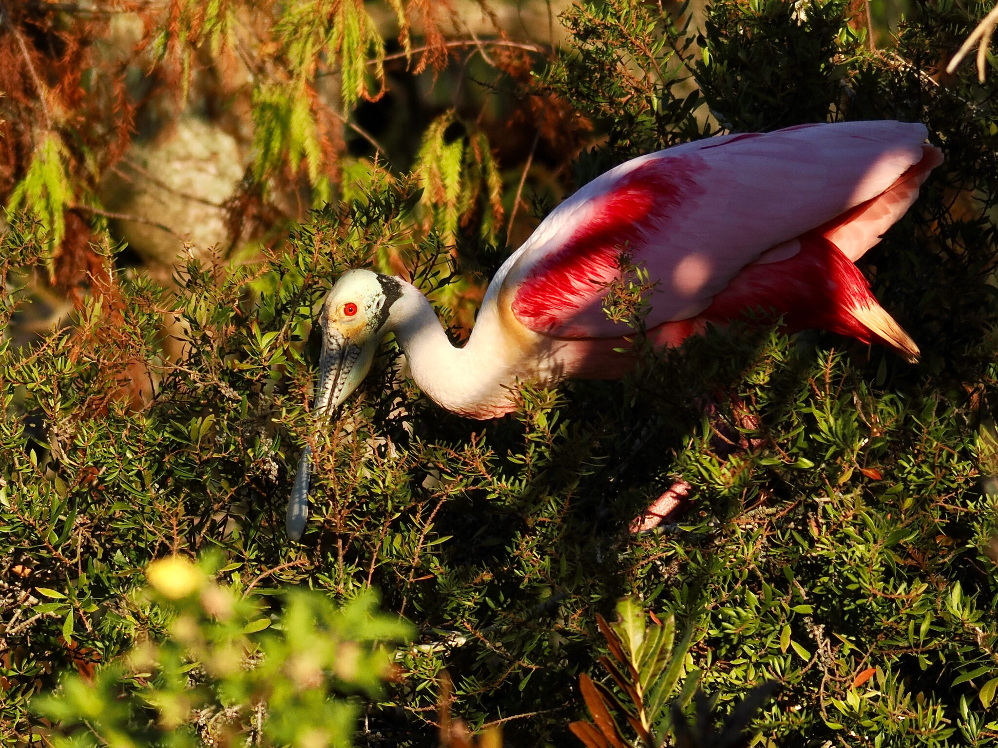 On New Years Day 2026 we visited the Orlando Wetlands and observed 8-10 Roseate Spoonbills. The park was closing at sunset and a park ranger was shooing all the birdwatchers and photographers (two people had Hasselblad equipment!) off the boardwalk. The Roseate Spoonbills were grouping together and clearly looking for spots to roost for the night. As the sun slid lower in the sky, the spoonbill’s colors lit up as if they were on fire. It was truly spectacular!