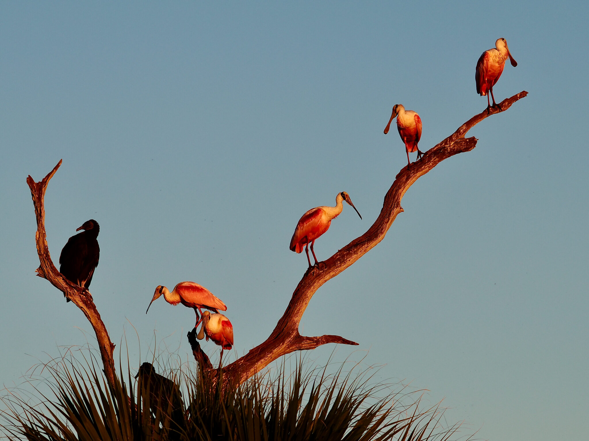 Roseate Spoonbills and Black Vultures Roosting