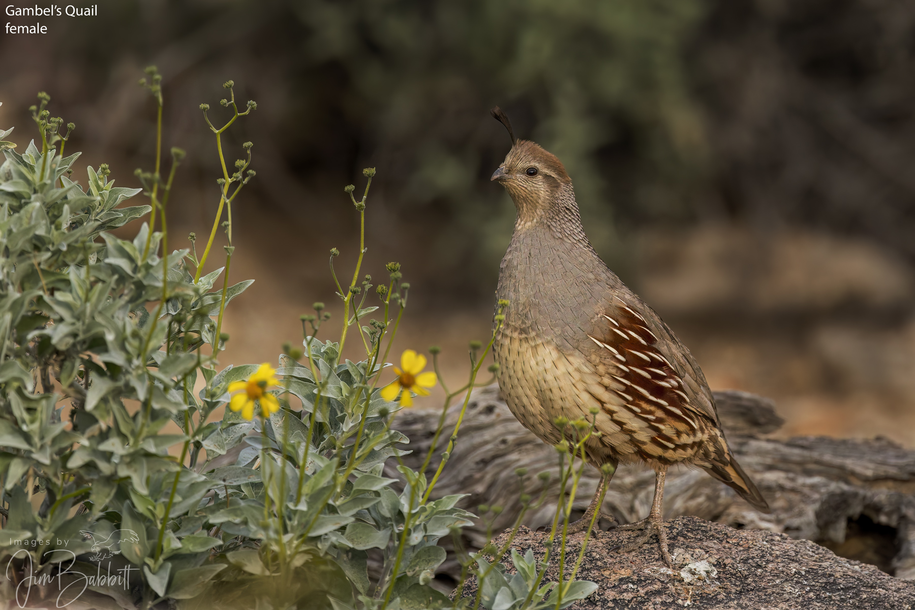 I spent a few days last week on a last minute trip to Desert Photo Retreat near Tucson AZ. Great fun! While the number of species I photographed was not great (about 20 different species), the number of individual birds and photo opportunities was terrific. This is the first image I have processed. This is a female Gambel’s Quail, a bird that makes its living in the harshest desert environments. Because it lives in the desert, a sure way to draw these birds in close is to provide water.