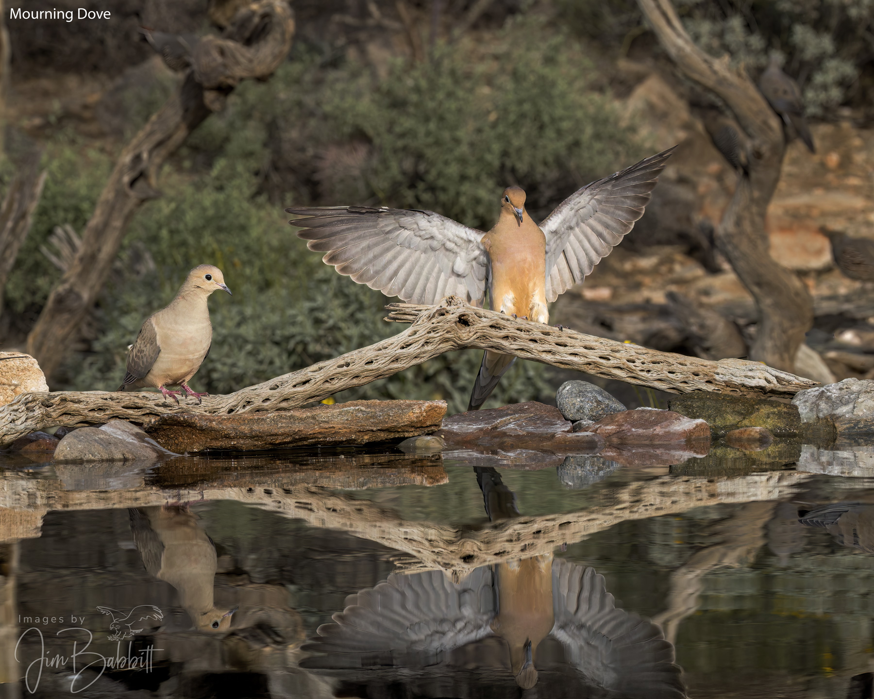 It’s easy to sit here and contemplate taking photos in a given situation-I would have these settings, I would compose it a certain way, I would process it in this manner. It is a little more difficult when you are sitting there and the bird comes in to your vision. It is easy to forget what you “should” do. This is an example. If I had either flipped my camera over into portrait/vertical mode or if I had brought my POV down, I might have captured a better shot. It would have showed the dove landing and the reflection of the same. In this shot I barely caught the reflection. This image had a small amount of canvas added to the bottom of the image. This was taken at Desert Photo Retreat.