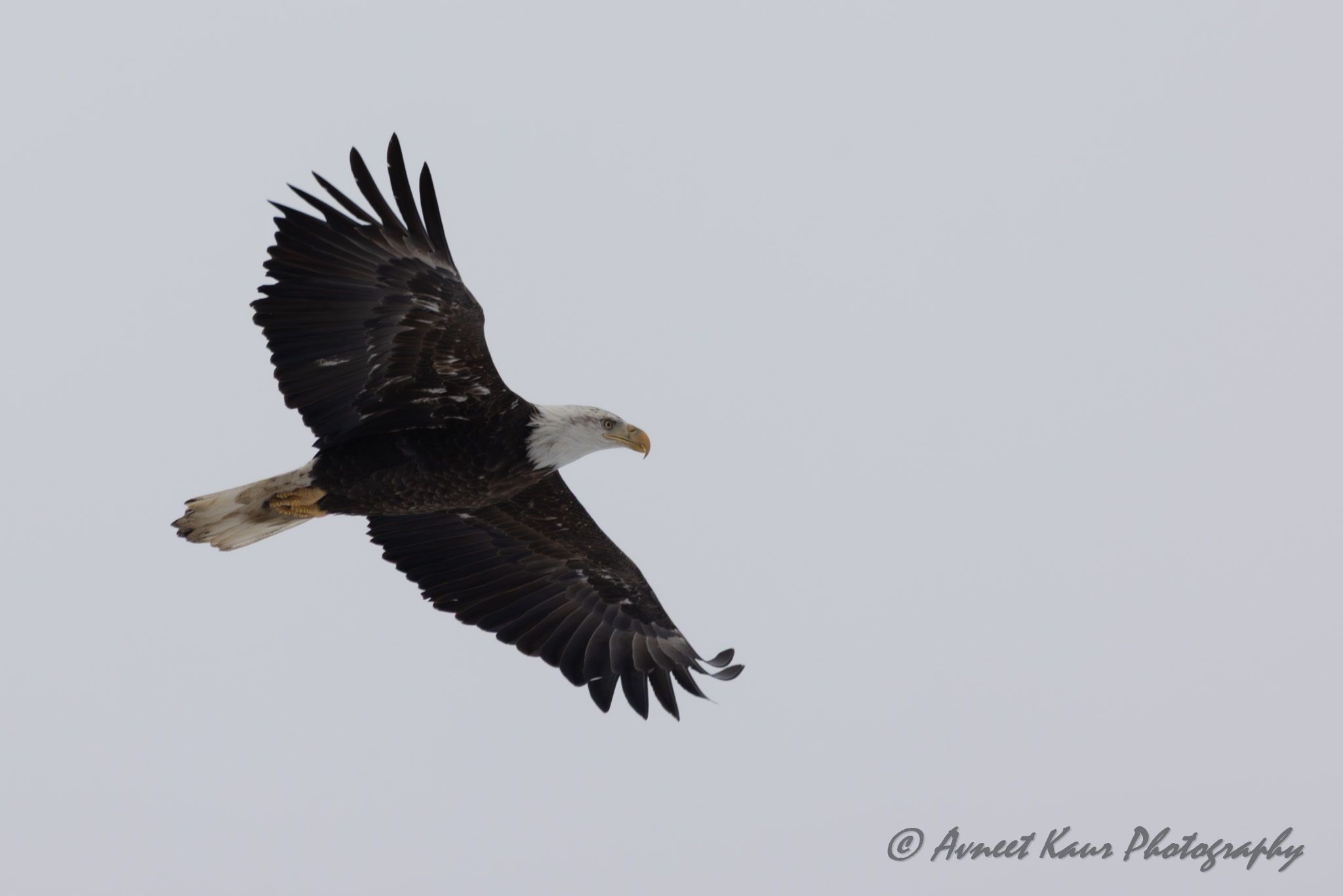 A bald eagle soars gracefully through a cloudy sky with its wings fully extended. The image captures the bird’s powerful presence and impressive wingspan!!! Lexington – Kentucky; February 3, 2026