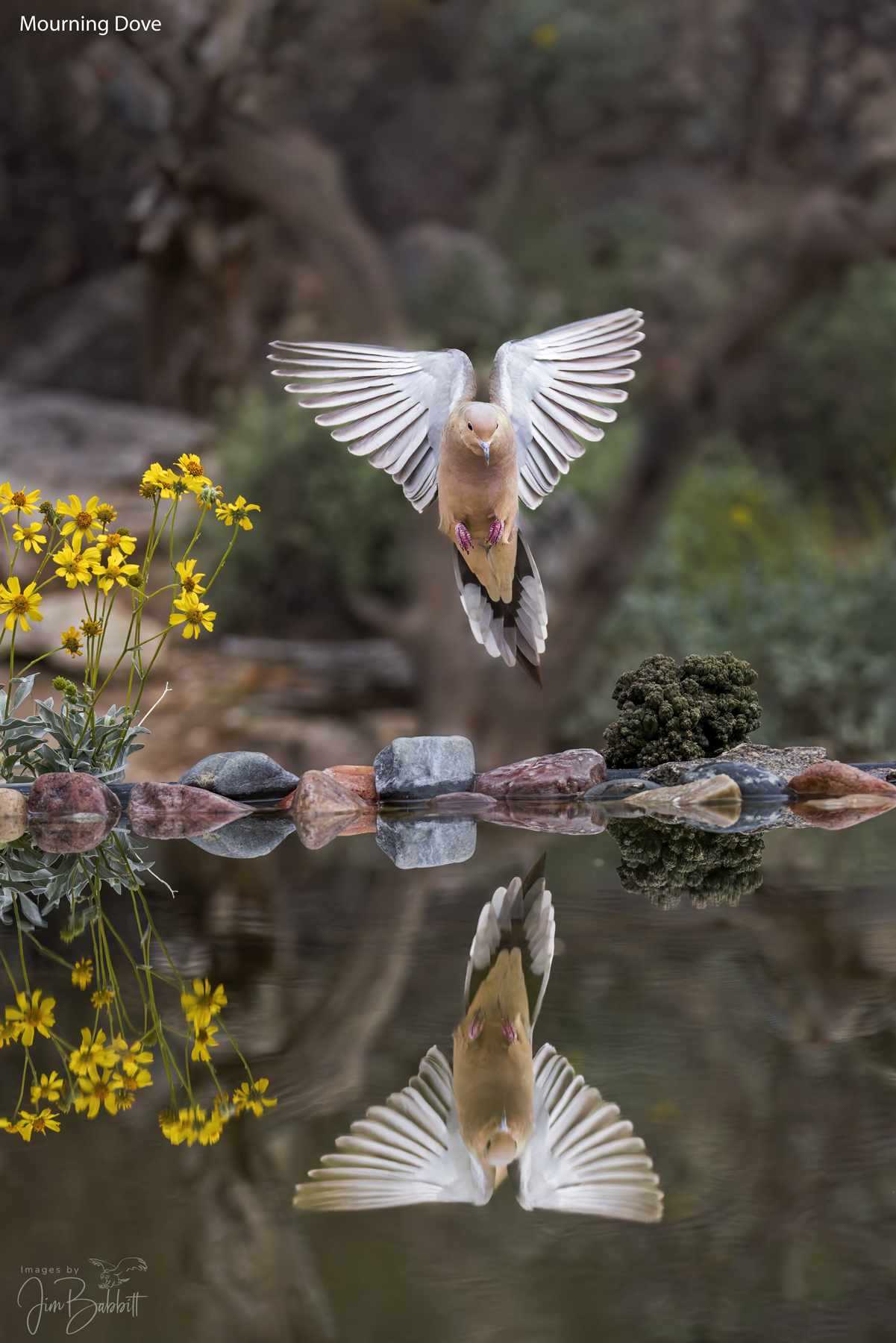 Another common bird, a Mourning Dove, that is sometimes a nuisance. This one is presenting, IMO, an appealing pose and presentation. Shot at Desert Photo Retreat near Tucson AZ. About 75% FF, BG has been darkened and blurred slightly. A distracting reflection has been removed from the water.