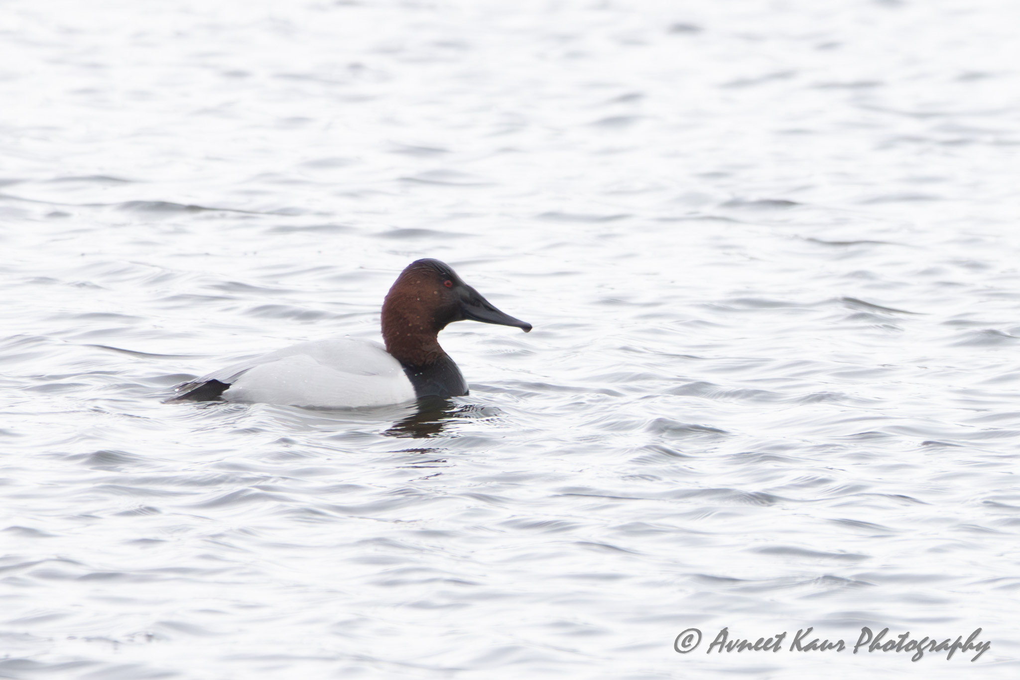 A canvasback waterfowl with a chestnut-brown head glides gracefully on a serene body of water. The water reflects the light, creating a peaceful atmosphere!!! Lexington – Kentucky; February 8, 2026