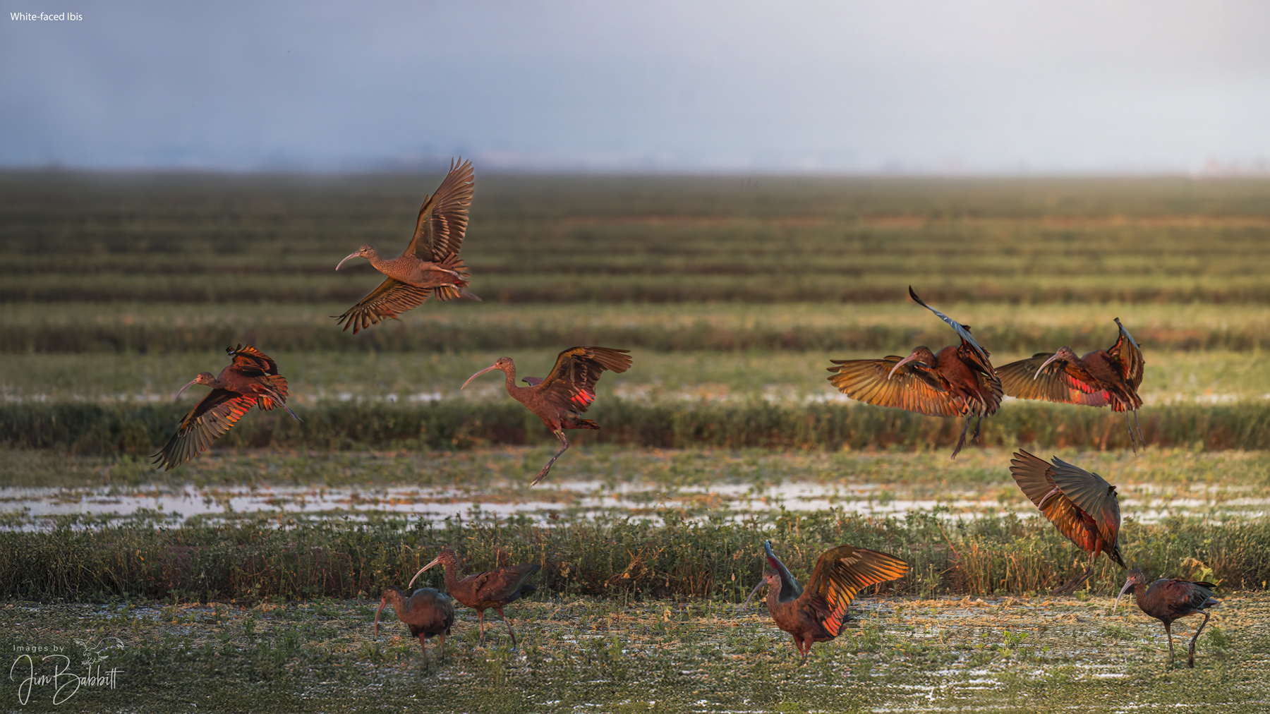 This is an image that many people would not bother with. Recently I was near the Salton Sea in the Imperial Valley of California. I was traveling on a dirt farm road before sunrise to photograph some Burrowing Owls I had spotted the day before. On my left, a field was being flooded for irrigation. When this happens large numbers of birds, often seagulls, show up to eat the insects and worms that are driven to the surface. What I did not expect was a flock of 200 White-faced Ibis to fly in. I saw them coming and rolled my window down, but did not expect a large number of them to land, literally, next to my car. I totally botched up the exposure and zoom settings and ended up with images that were marginal. I could not pass up the beautiful colors that were highlighted by the sun peeking over the horizon and tried to make the image as good as possible. This image has had LOTS done to it in Photoshop. A number of OOF birds were cloned out. A linear gradient was placed from the right and the sun direction was emphasized. Several of the birds were OOF and I attempted to sharpen them individually with poor success. In the end, it is what it is, but I still like it. I cropped it in a 16:9 aspect to emphasize the direction they were landing in.