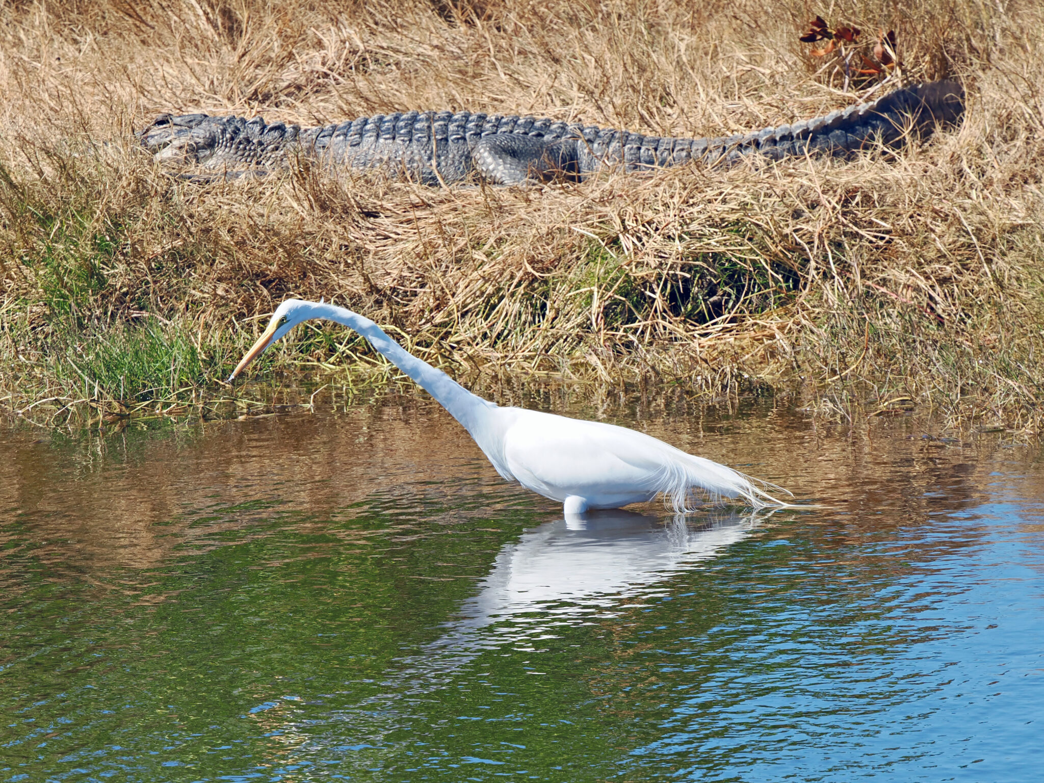 Good timing to get the croc as the Egret foraged by.