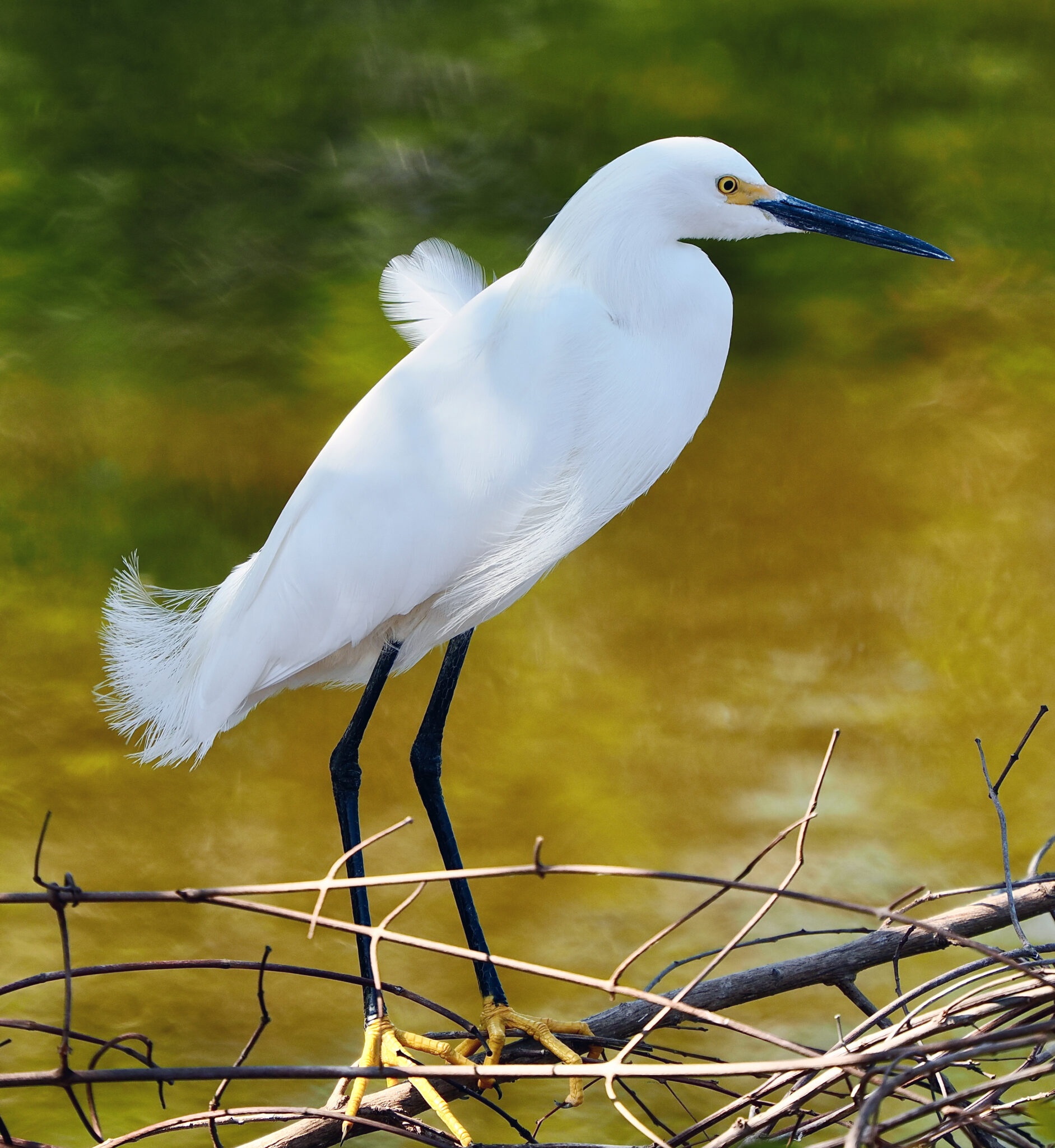 The Snowy Egrets were in their very fine breeding plumage.