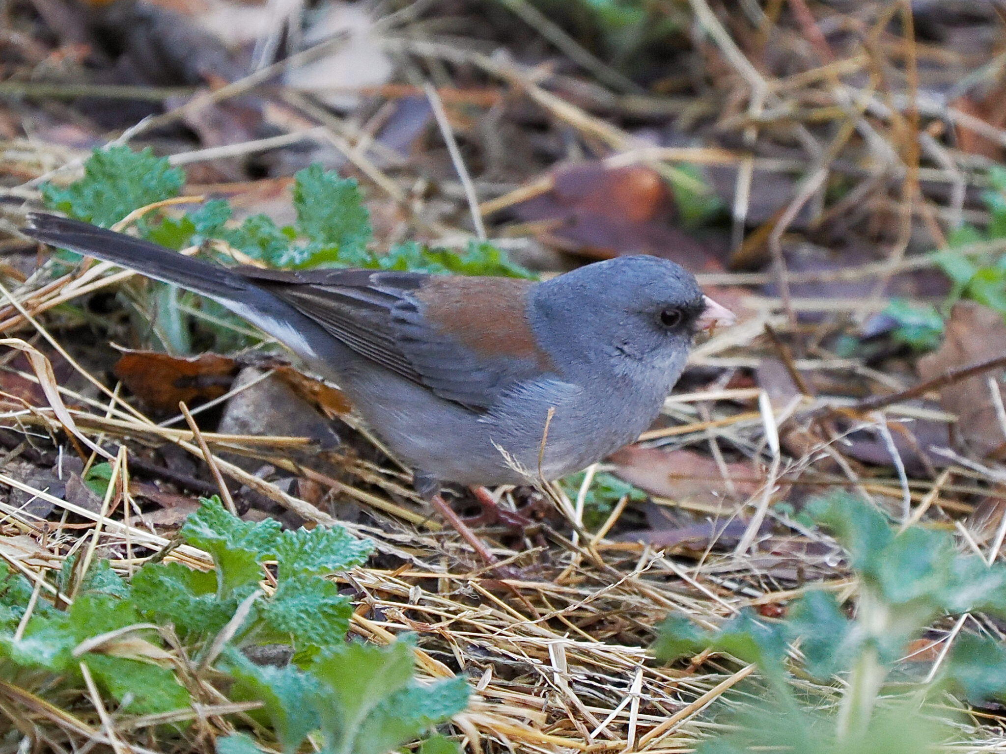 While in Arizona, we drove to Madera Canyon, which is about 30 miles south of Tucson, and went to the Santa Rita Lodge. The owner of the Lodge has maintained more than a dozen bird feeders for 20 years – to attract birdwatchers to his lodge. There were a few Juncos finding bits on the ground near the feeders.