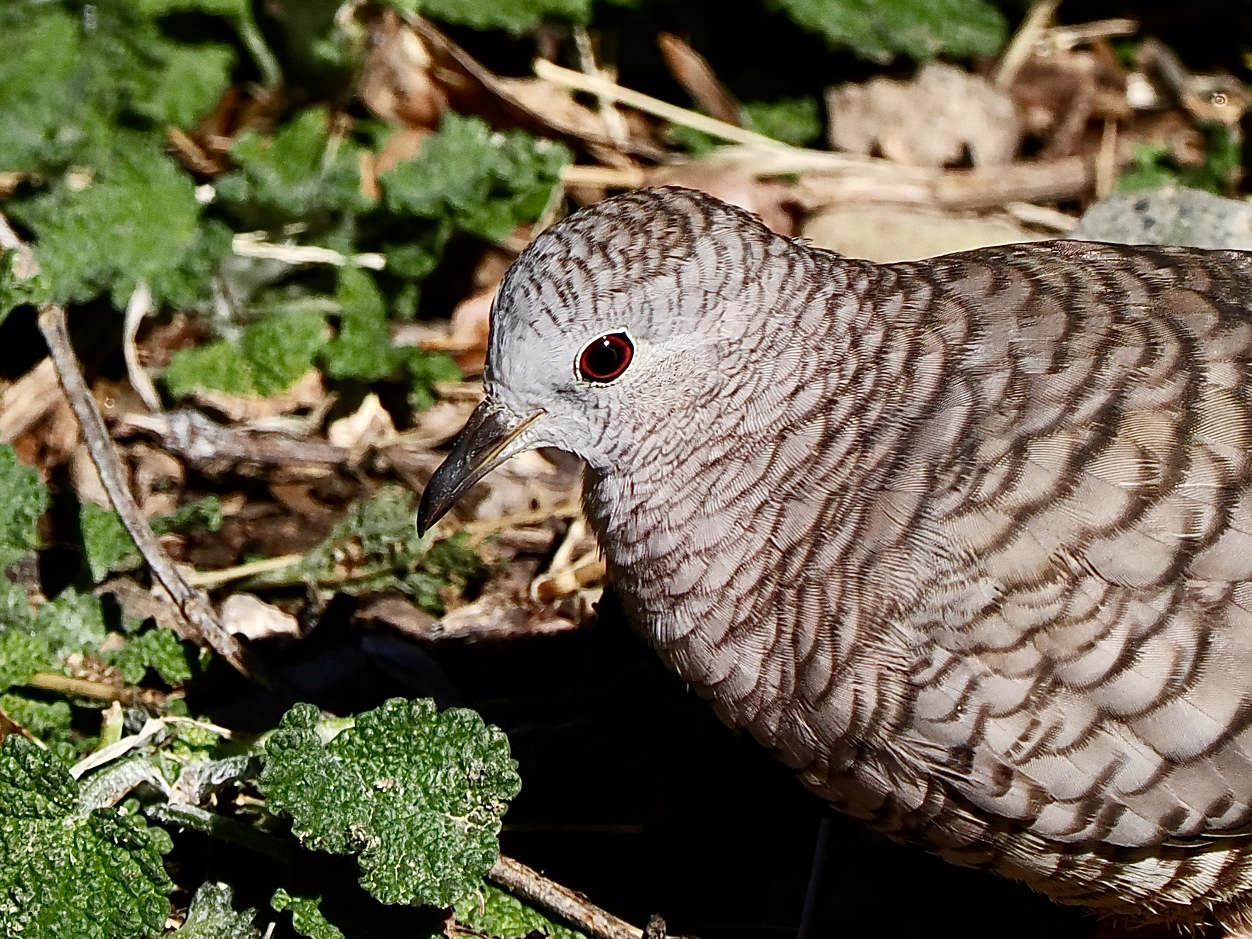 While in Arizona, we drove to Madera Canyon, which is about 30 miles south of Tucson, and went to the Santa Rita Lodge. The owner of the Lodge has maintained more than a dozen bird feeders for 20 years – to attract birdwatchers to his lodge. There were several Inca Doves pecking about around the feeders.