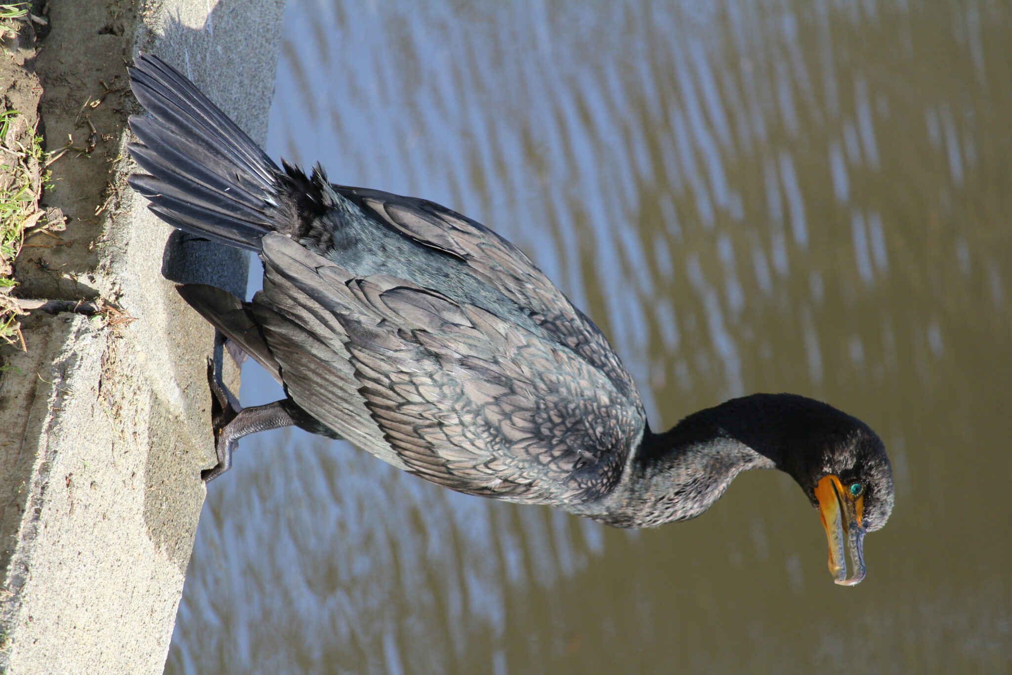 A Double-crested cormorant standing in the sun.