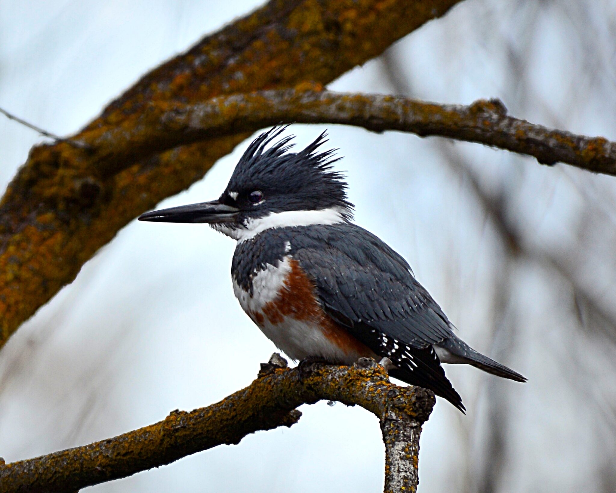 Kingfisher perched above a pond off of the Boise River in Boise Idaho