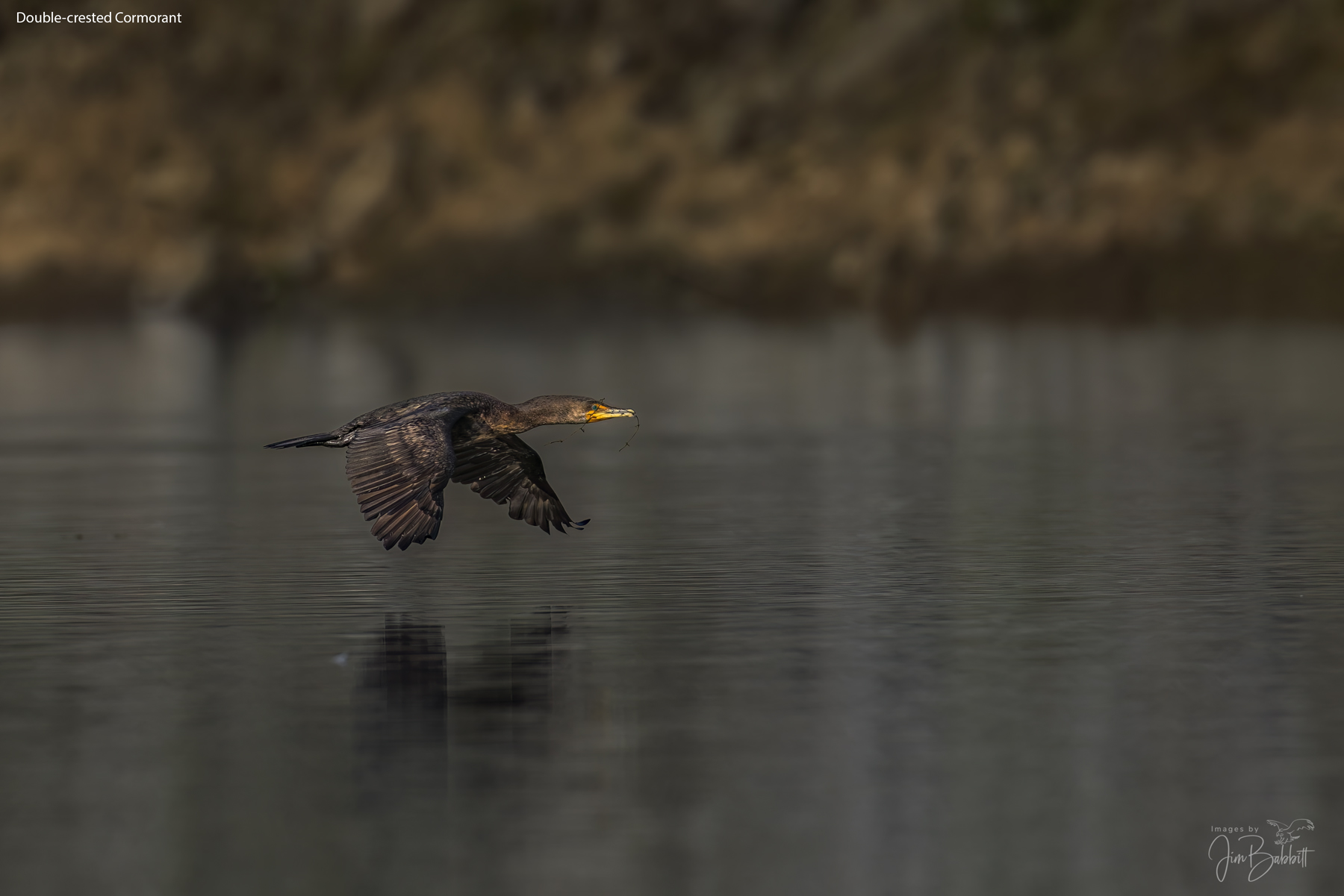 Double-crested Cormorants are common winter residents of San Diego inland lakes. Amazing birds, they can dive up to 25′ depth, swim fast enough to chase down fish underwater, and stay submerged for 1 minute. When I was photographing this one, I was set up for shooting birds that were much brighter, Grebes. As a consequence, when this bird flew across my field of vision, my camera settings were such that I grossly underexposed the images. This has been brought up in processing over 1 stop.