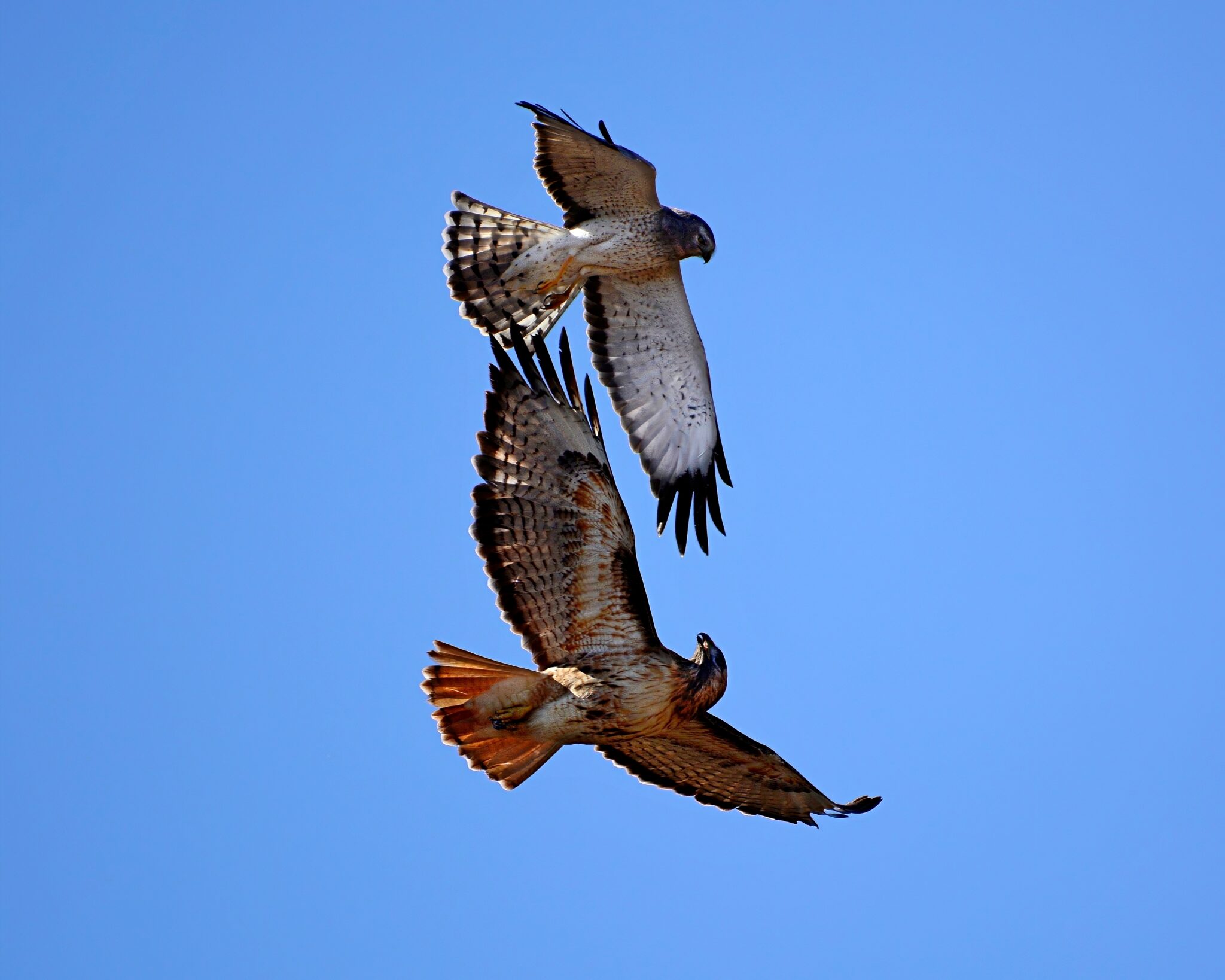 Difficult enough to catch a Northern Harrier, but one tussling with a RTHA even more amazing. Nice capture!