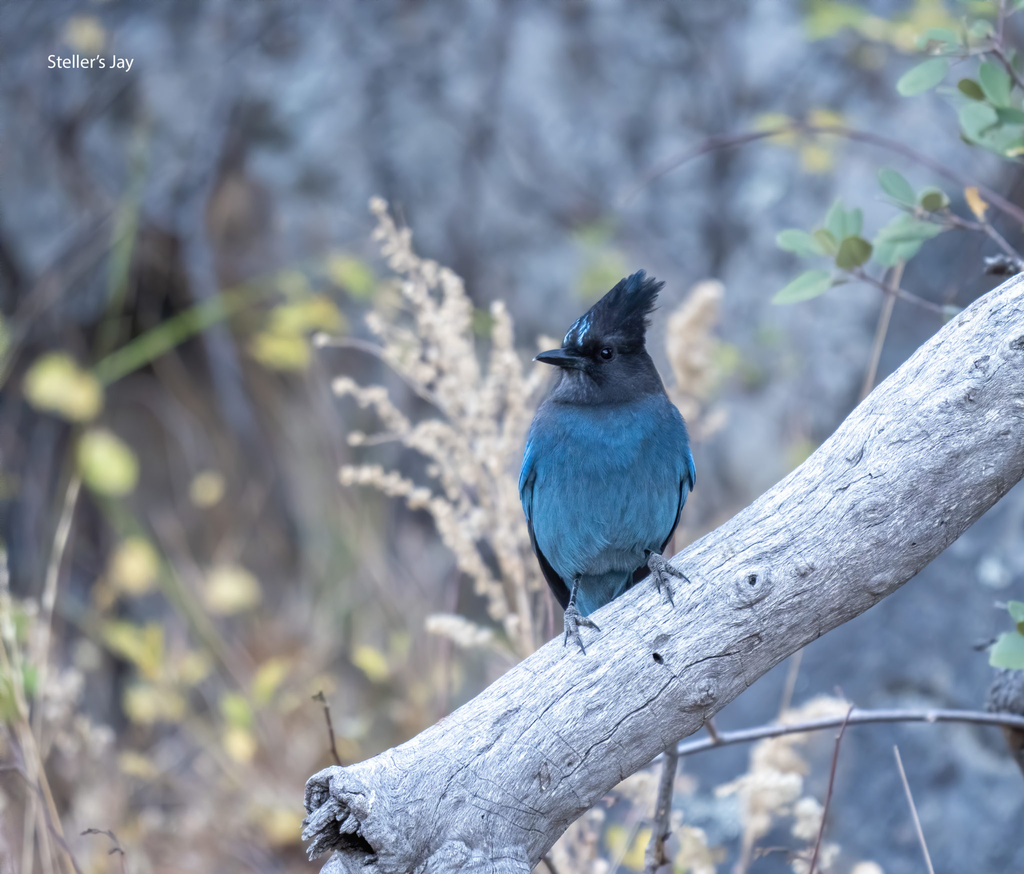 This is the mountain environment equivalent of the Blue Jay of the Midwest and East. It is a widespread species with much variation in the richness of its blue color, ranging from almost black to deep royal blue. One thing that does not change is the “lightening bolt” on its forehead or “front”. This picture was taken by my wife, Deb, from a portable hunting blind we set up in our coastal mountains at about 5000′ elevation. We set the blind up at a cattle watering trough that draws many birds during the dry season here in So. California. I am not sure my wife appreciated sitting in this blind for many hours but she did enjoy this bird. This was taken at a distance of about 25′.