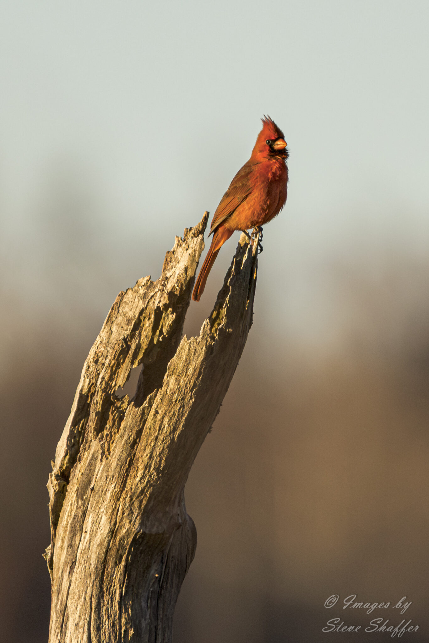 Northern Cardinal just after sunrise had just found the perfect perch to sing from.