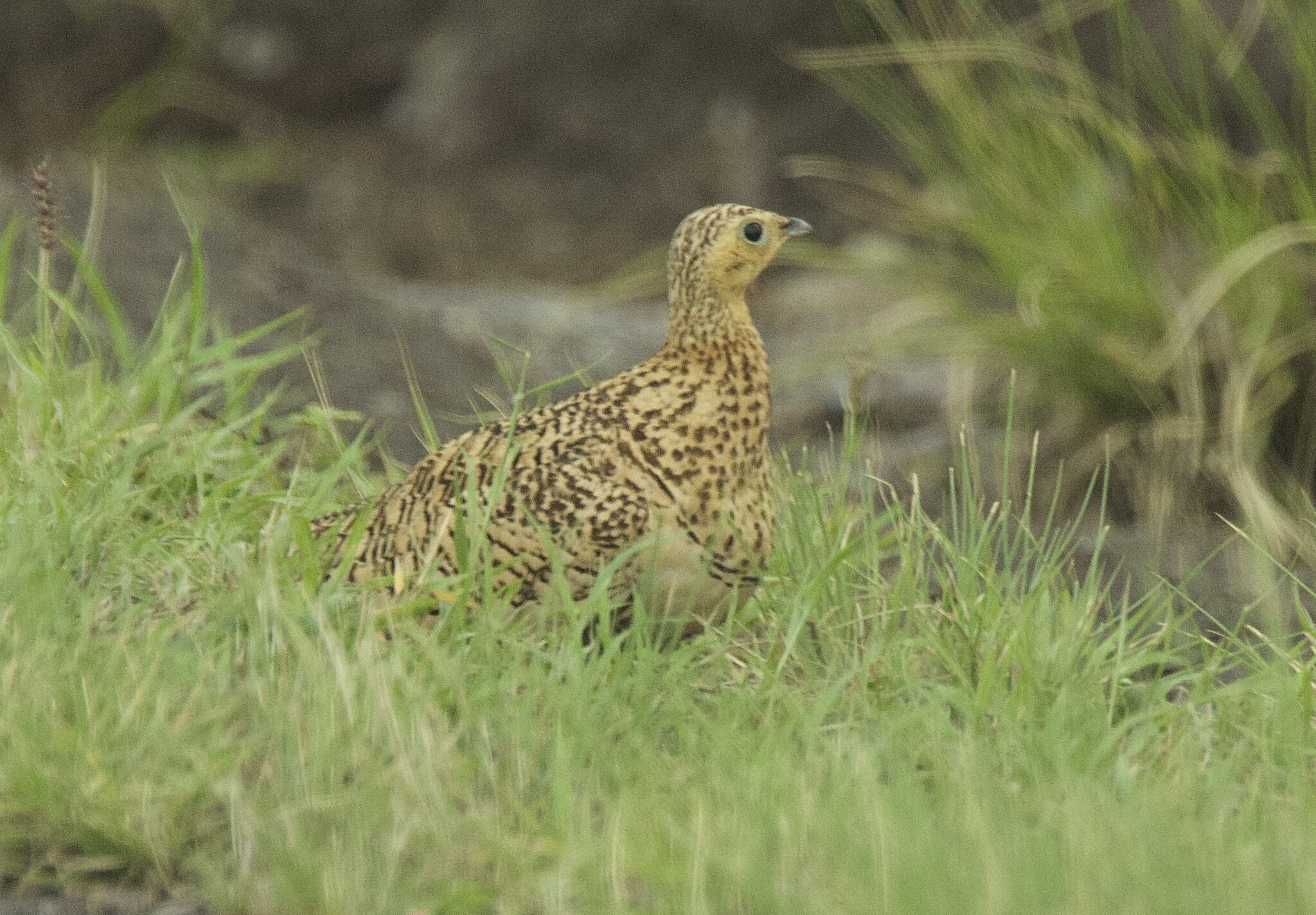 We saw nine sandgrouse fly into a soccer field; females have spotted necks