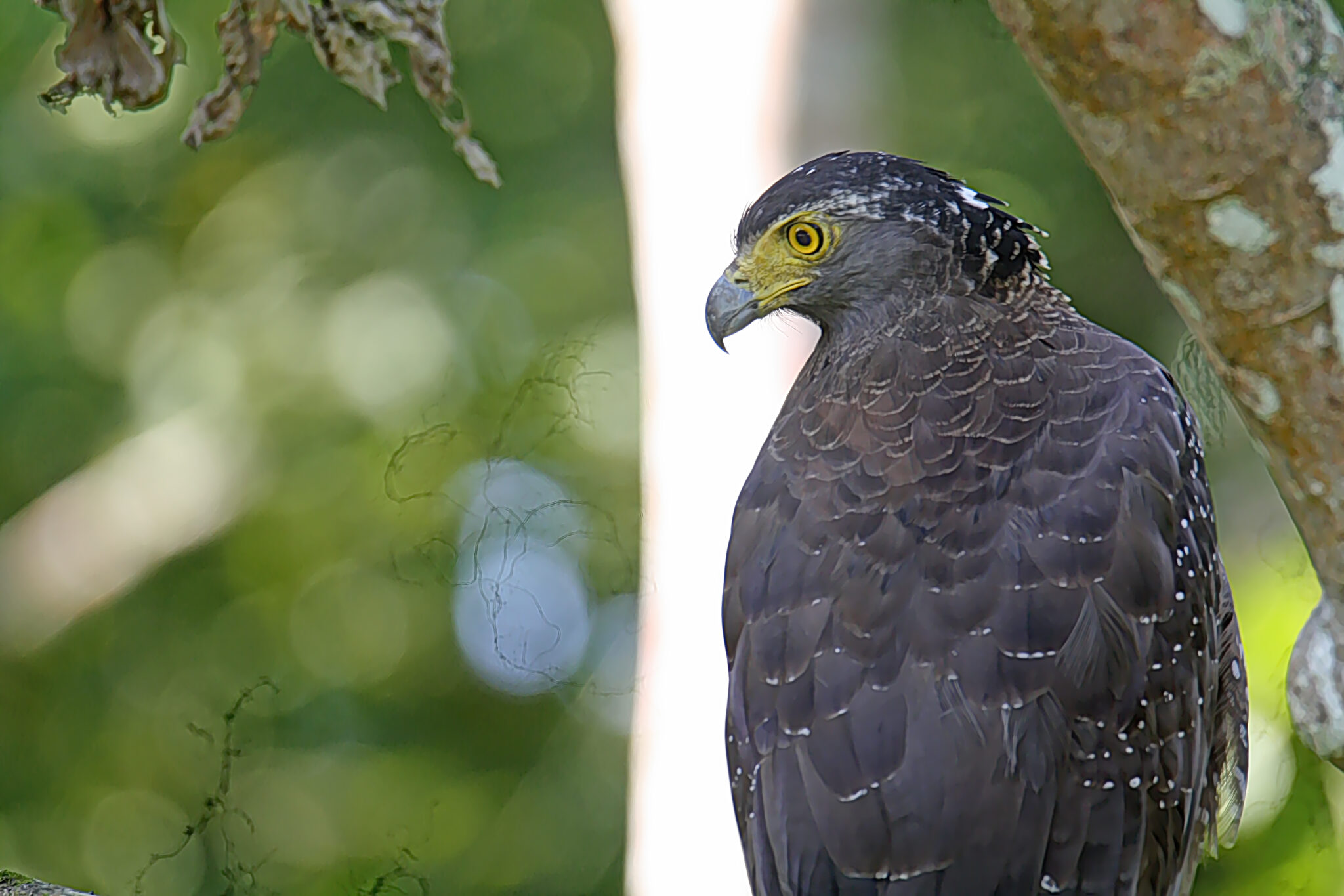 The crested serpent eagle as the name suggest is primarily snake hunter. It seems to favour tree snakes but its diet is not limited to serpents it will also take lizards frogs small birds, This eagle will sometime lay eggs in old nest built by other raptors. There is a debate in the scientific community about this species. Some scientist believe that there are 21 different sub species of crested serpent eagle, while others consider some of these to be separate. A lot more study needs to be done about this eagle.