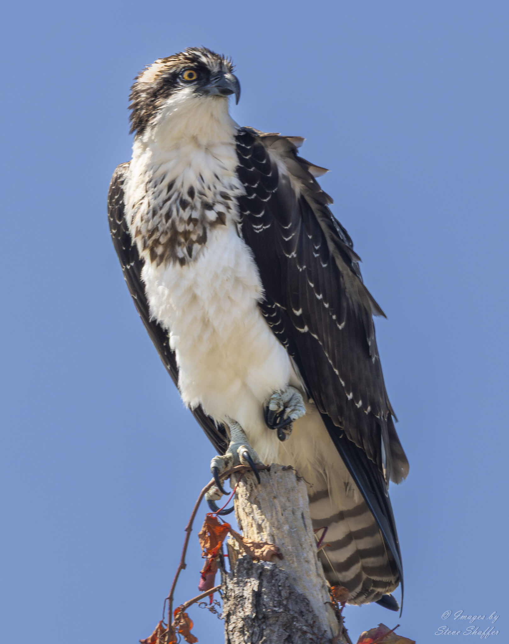 Another uncropped portrait image of an osprey taking a midday break after fishing off the coast of the Atlantic in Delaware.