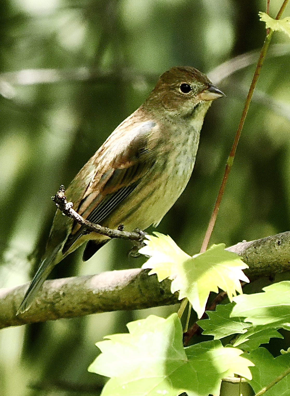 This female Indigo Bunting was watching before approaching a bird feeder.
