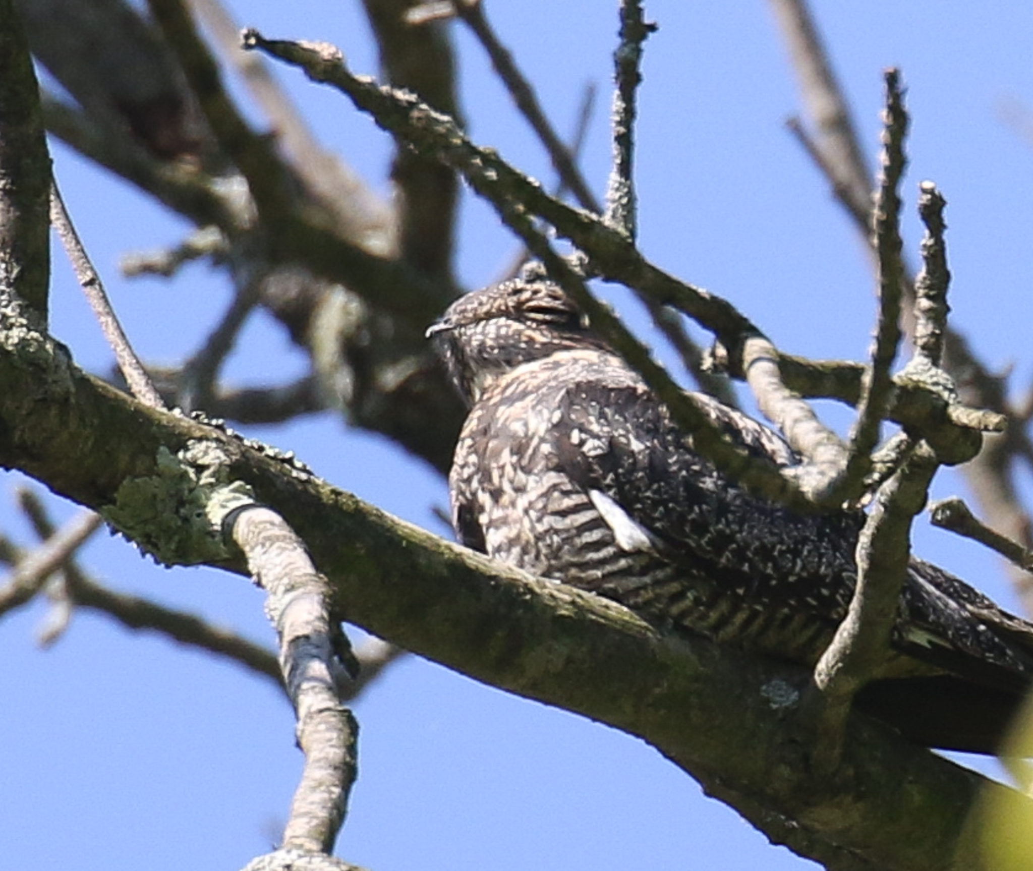 We were on an Ottawa County Parks field trip and walking down the trail. Some of the participants had passed under the branch over the trail when one of the participants spotted this Common Nighthawk. We got good looks and good photos as it watched us in the middle of the morning.