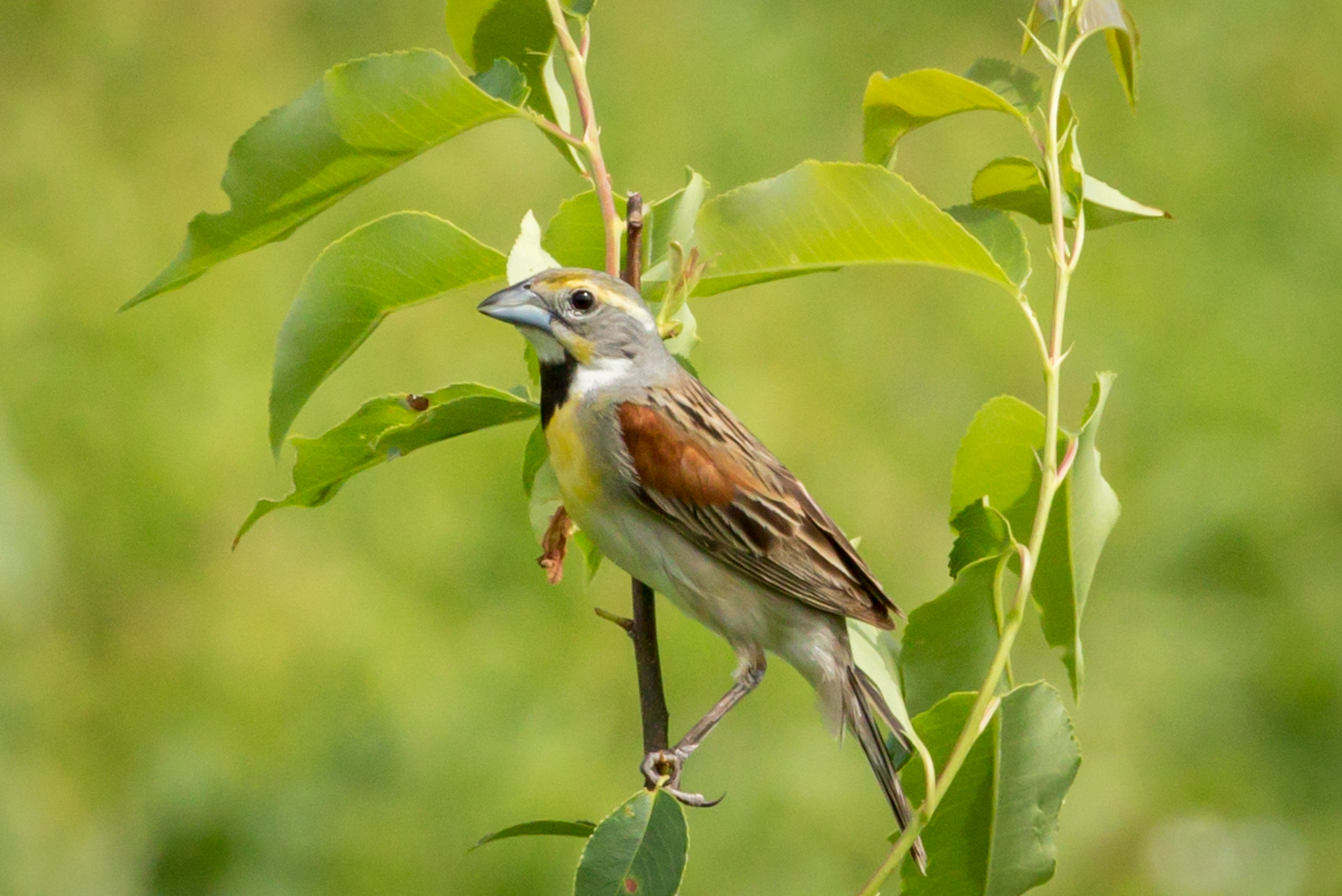 This male Dickcissel was one of several that appeared for the first time at the Morton Arboretum. They stayed for a couple of weeks before moving on. The male is most easily identified by the black bib.