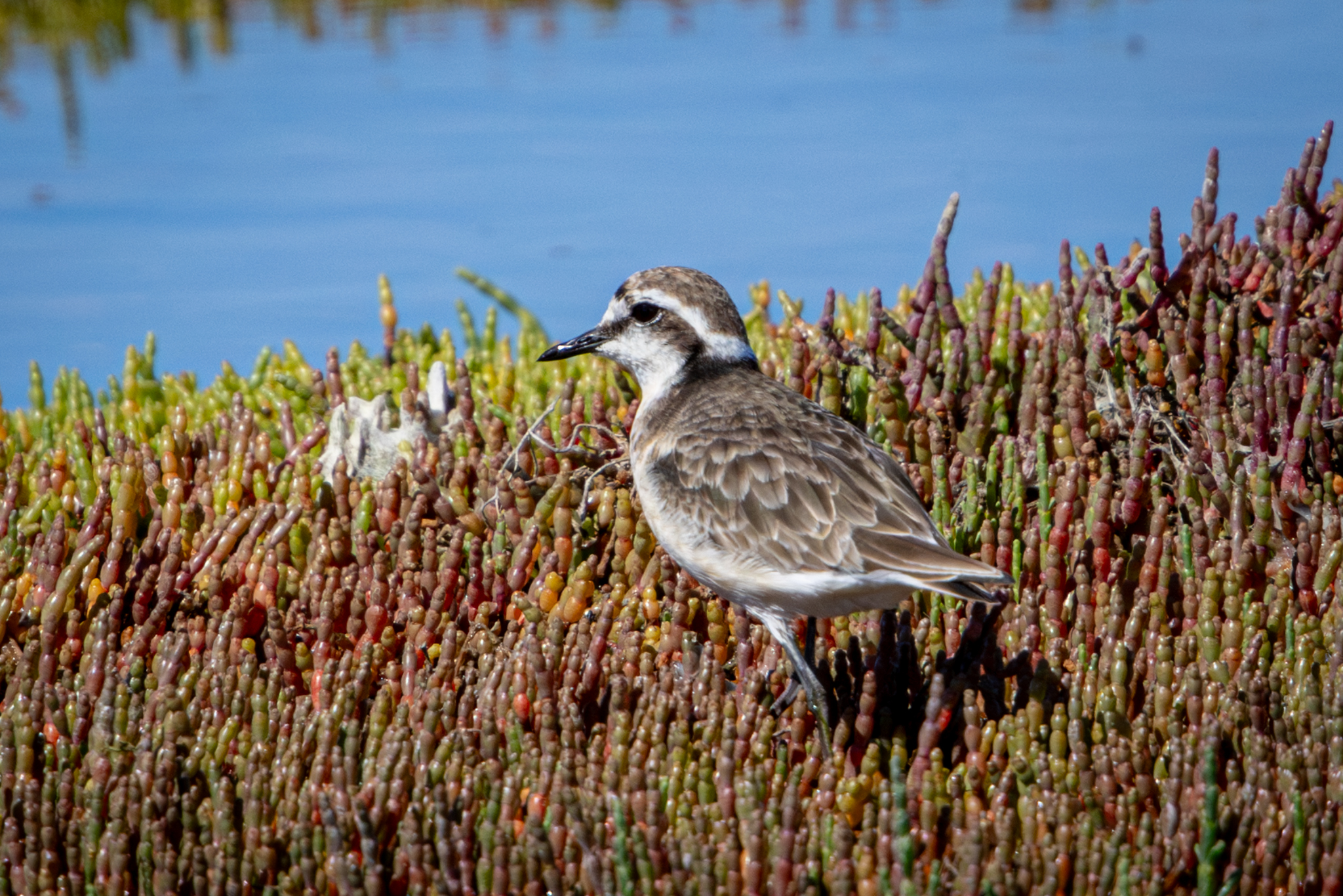 As we traveled down the road though the fields we ended up in a marshy area with lots of shorebirds and wading birds. We were introduced to several new types of Plovers like the Kittlitz’s Plover. Note the vegetation it was strolling through – it looks like something out of prehistoric times. We often saw this around marshes in beautiful shades of yellow, orange, and red.