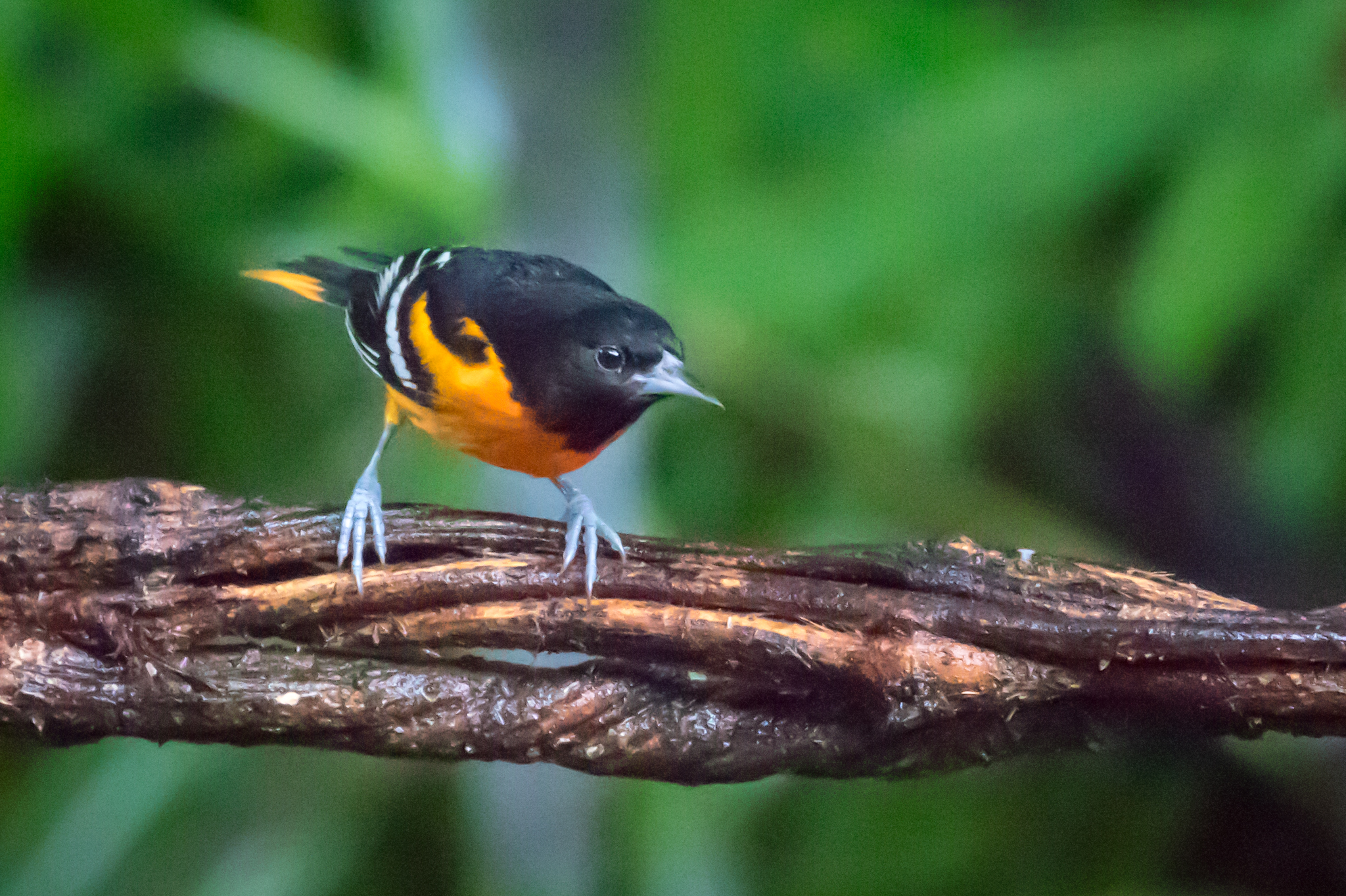 Male Baltimore Oriole looking for food at the Selva Verde Lodge.