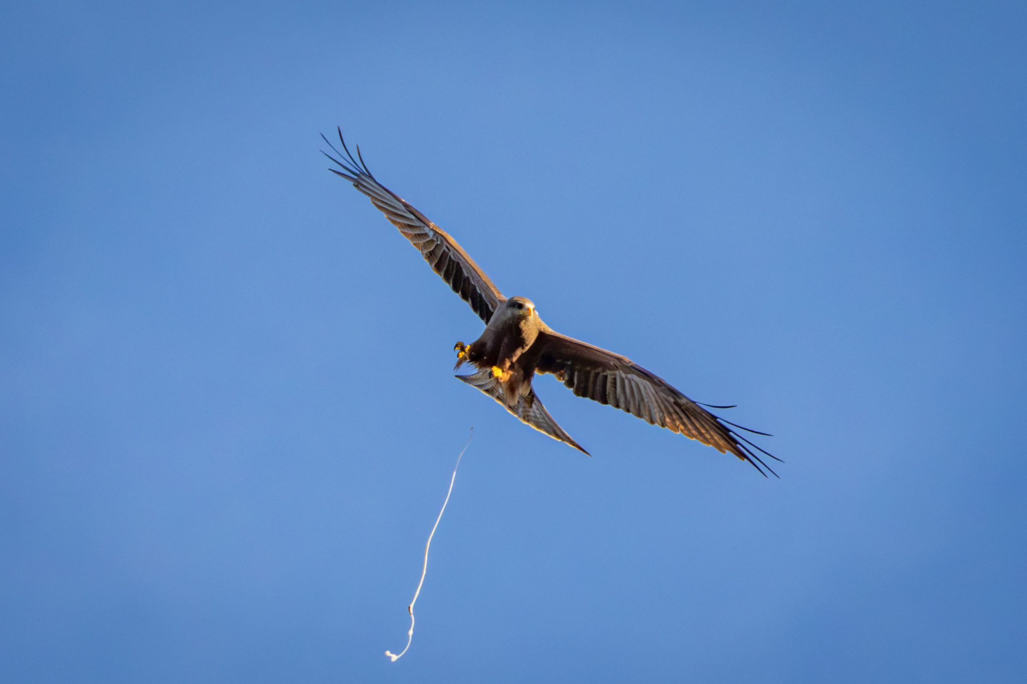This is the third shot in a series showing a Black Kite “eliminating” while in flight.