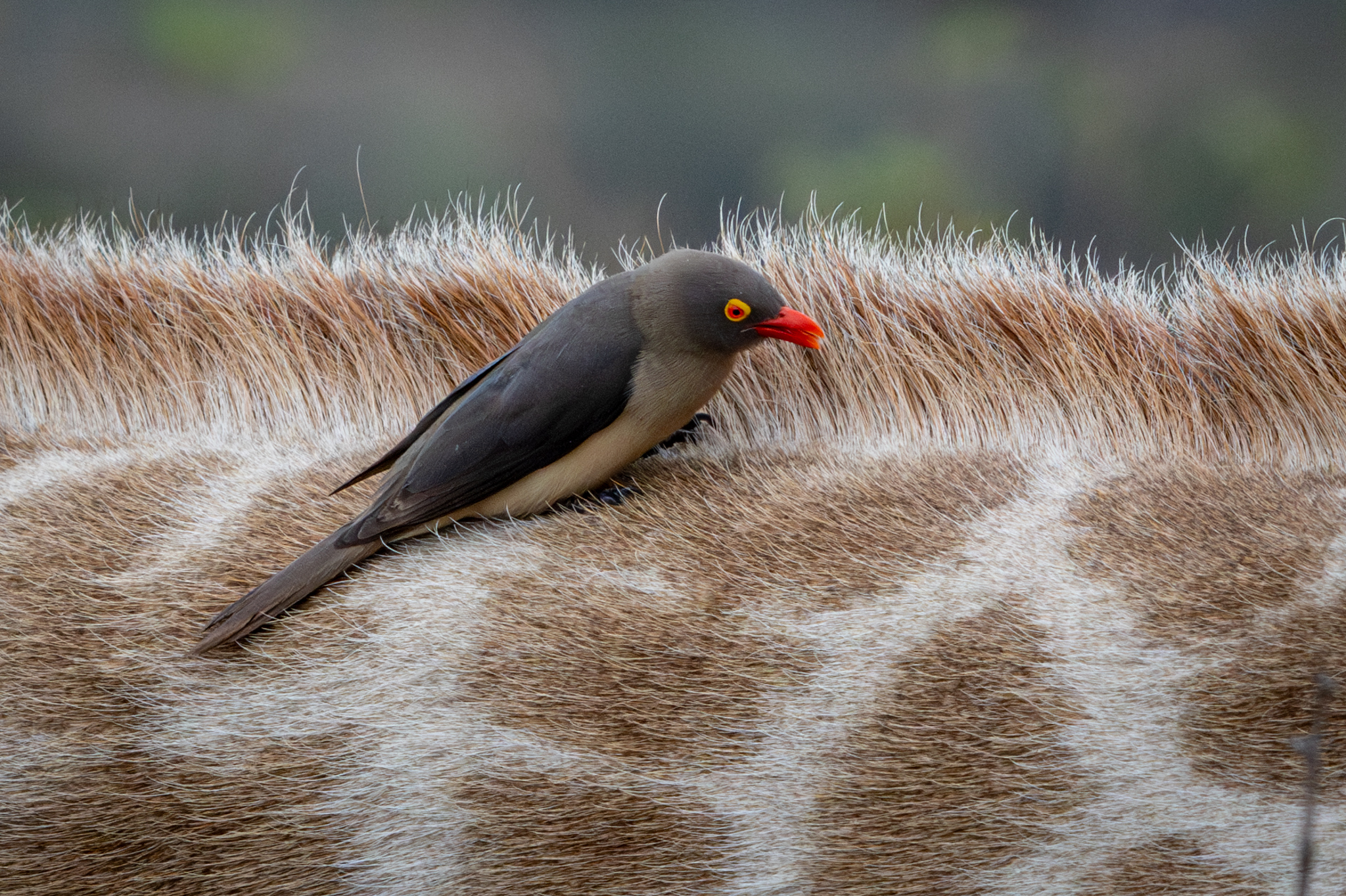 Here is a Red-billed Oxpecker on top of a large African mammal. Did you guess it was a giraffe?