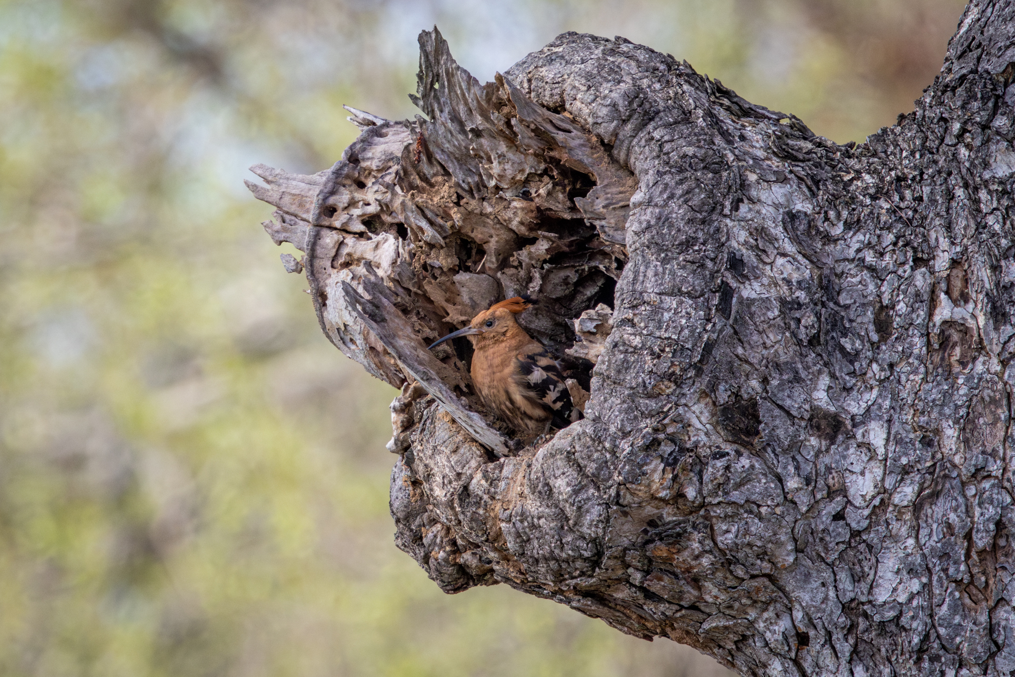 This Common Hoopoe (formerly Eurasian Hoopoe) sat at the entrance to its nest in the cavity where a limb broke off of the tree.