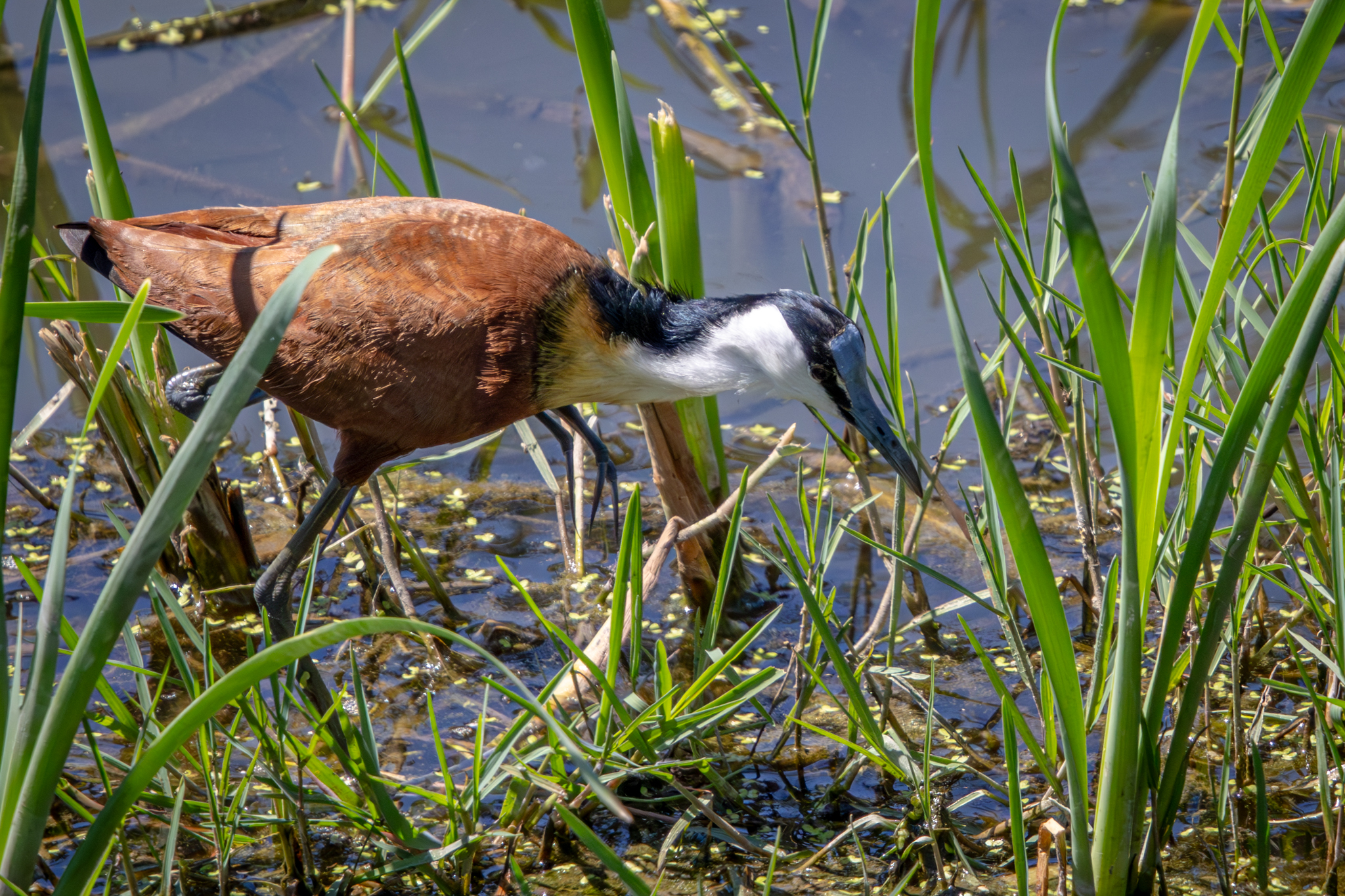 This African Jacana was foraging along the waters-edge.