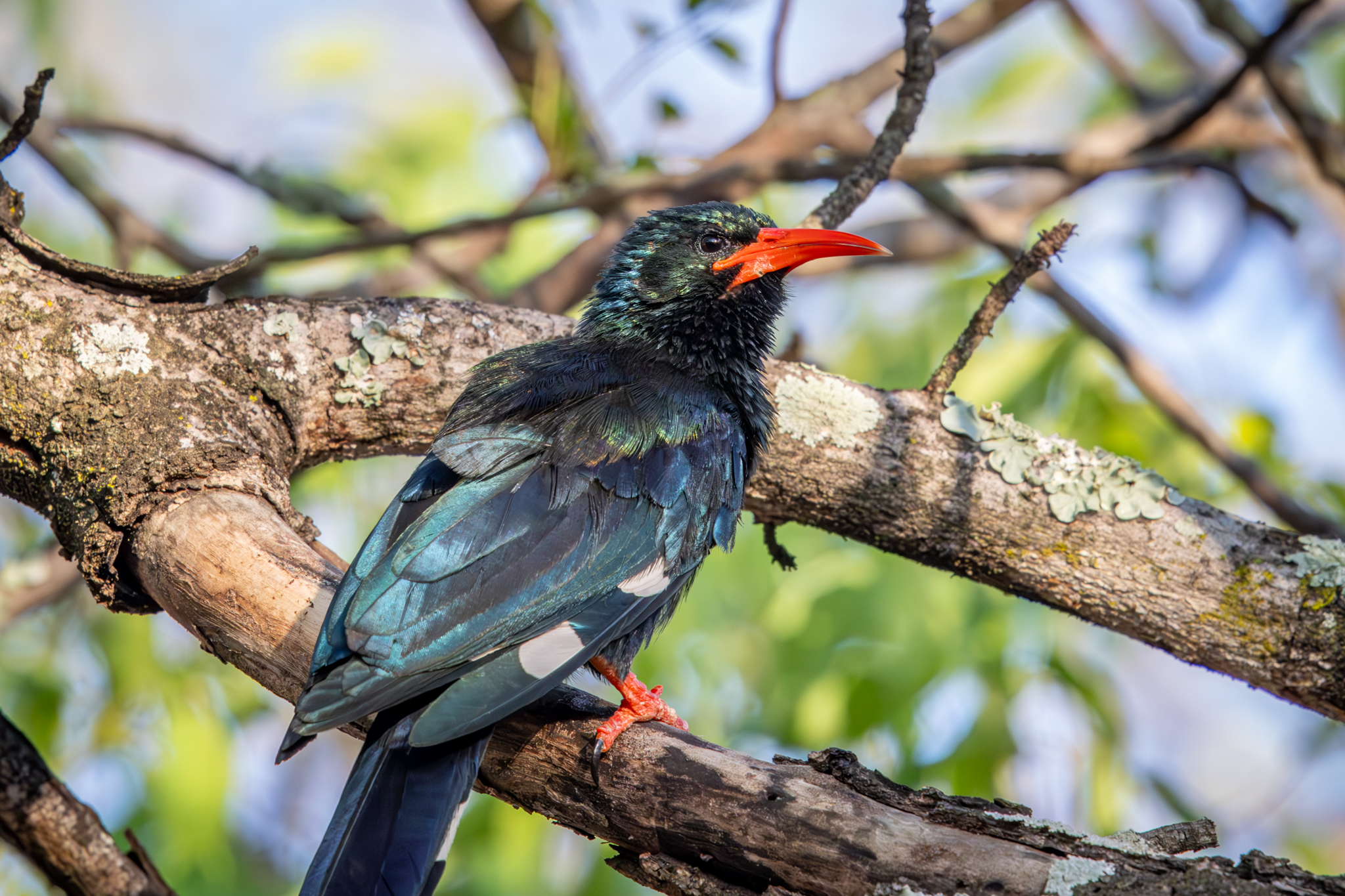 The Green Woodhoopoe catches the early morning light within our compound at Berg-en-Dahl.