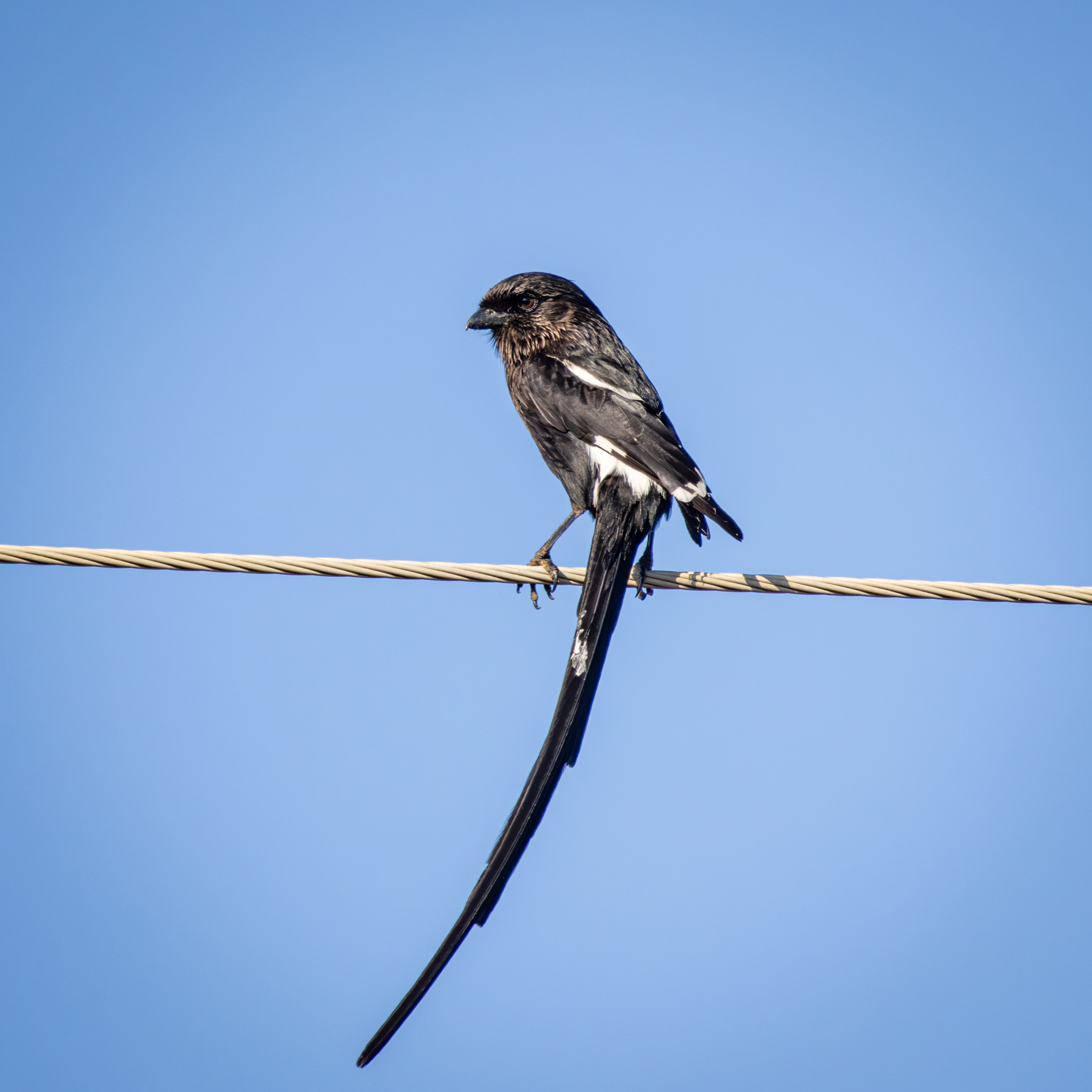 This Magpie Shrike was perched on a wire just outside of the gate into Berg-en-Dal Rest Camp showing its long tail hanging down. We saw this bird many times during our visit to Kruger.