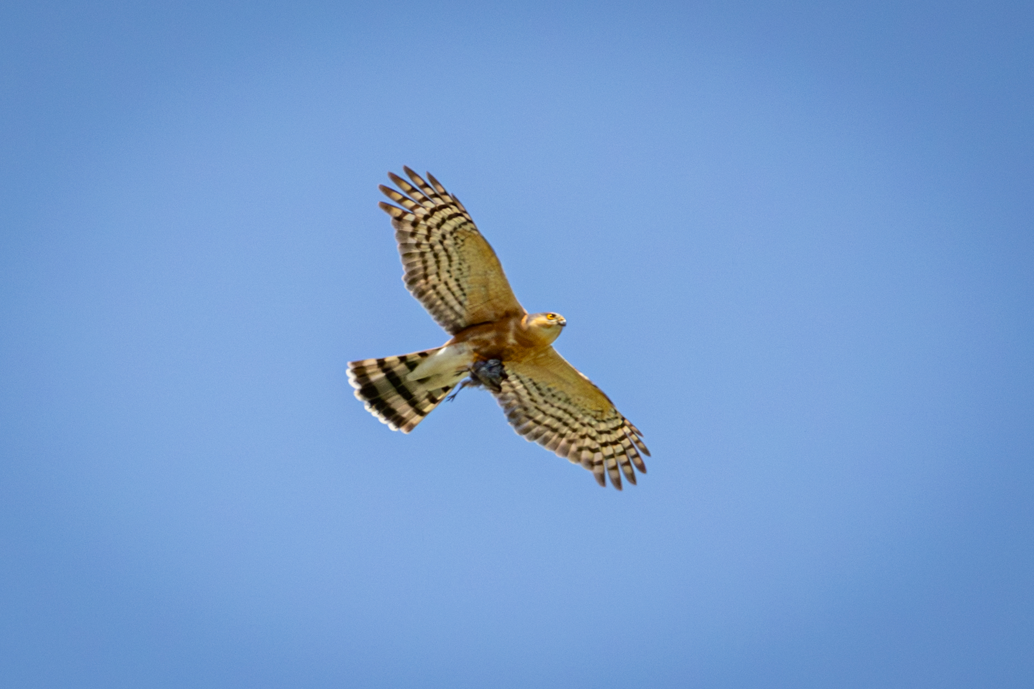 While loading our bags into the vehicles a Rufous-breasted Sparrowhawk slowly circled overhead with its lunch (a small bird) clutched in its talons.