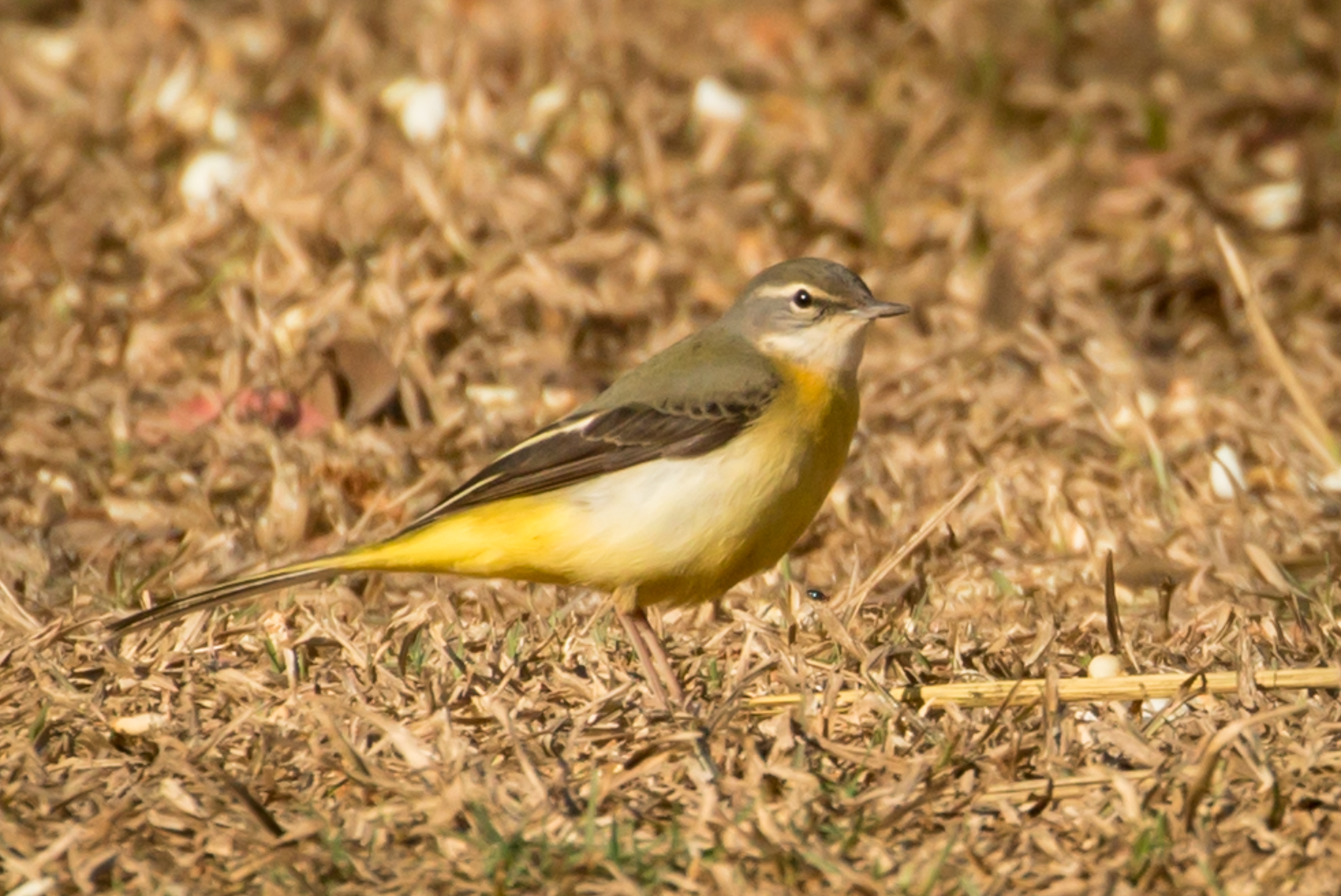This Gray Wagtail has striking yellow under-tail coverts and throat area. Seen at the entrance to the military post at the top of Khao Yai National Park.