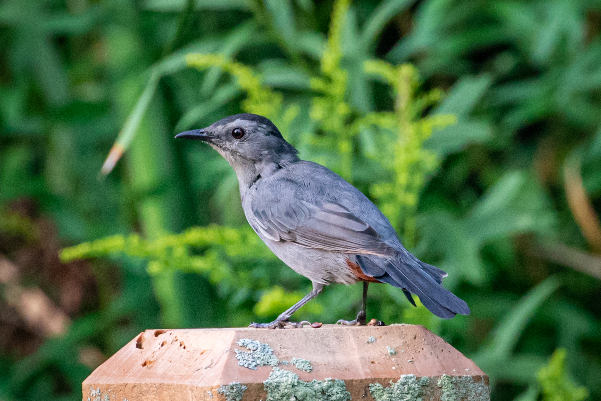 Catbirds are quite noisy birds, mewing like a cat or just making all sorts of smacking and clicking sounds. They are usually found hiding deep in the bushes so it was quite a nice surprise to see this one perched on a fence post. Note the little bit of orange beneath the tail.