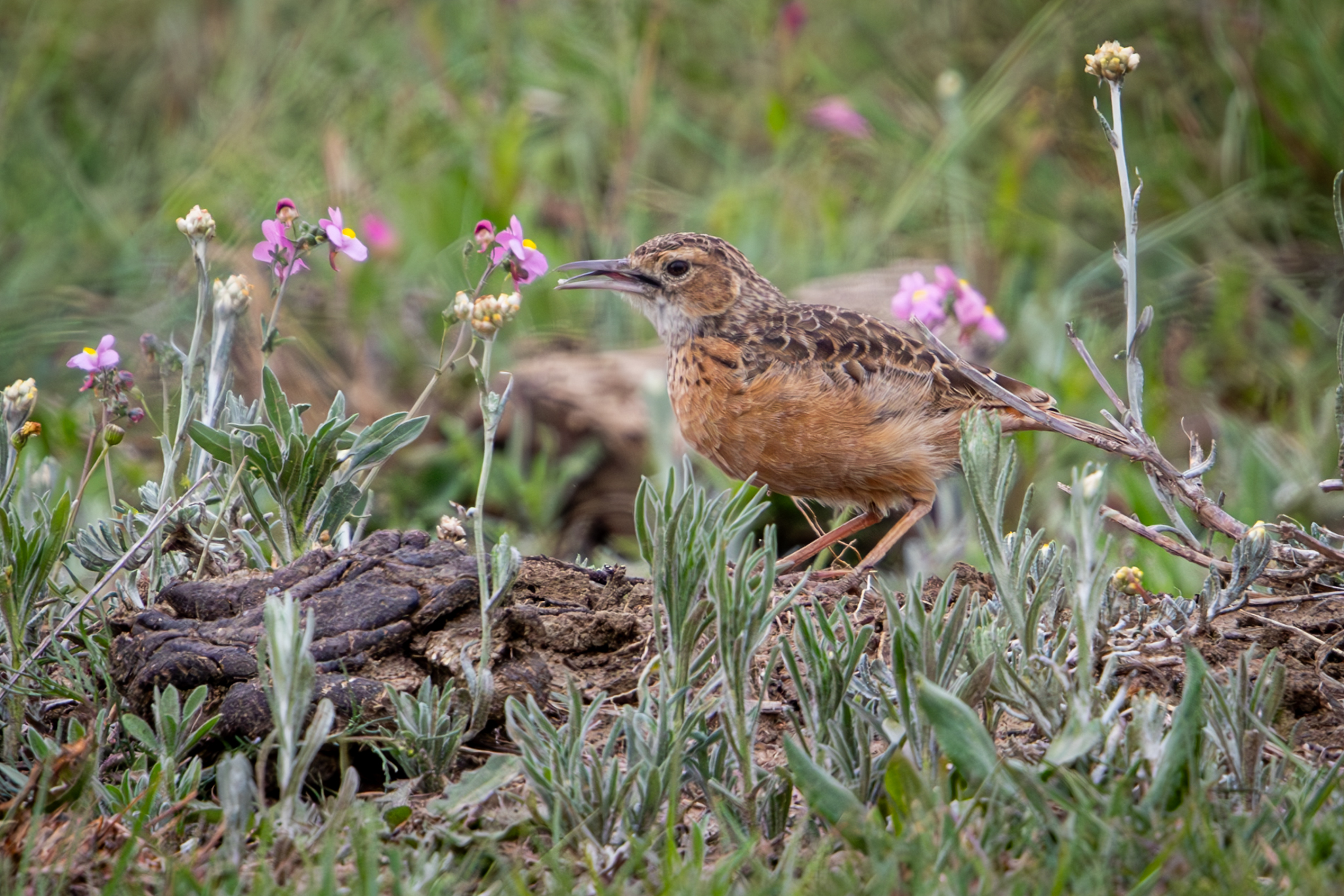 As we were driving back-roads on the outskirts of Johannesburg we came upon this Spike-heeled Lark. It’s very difficult to see the long spur coming off the heel of this bird in the picture.