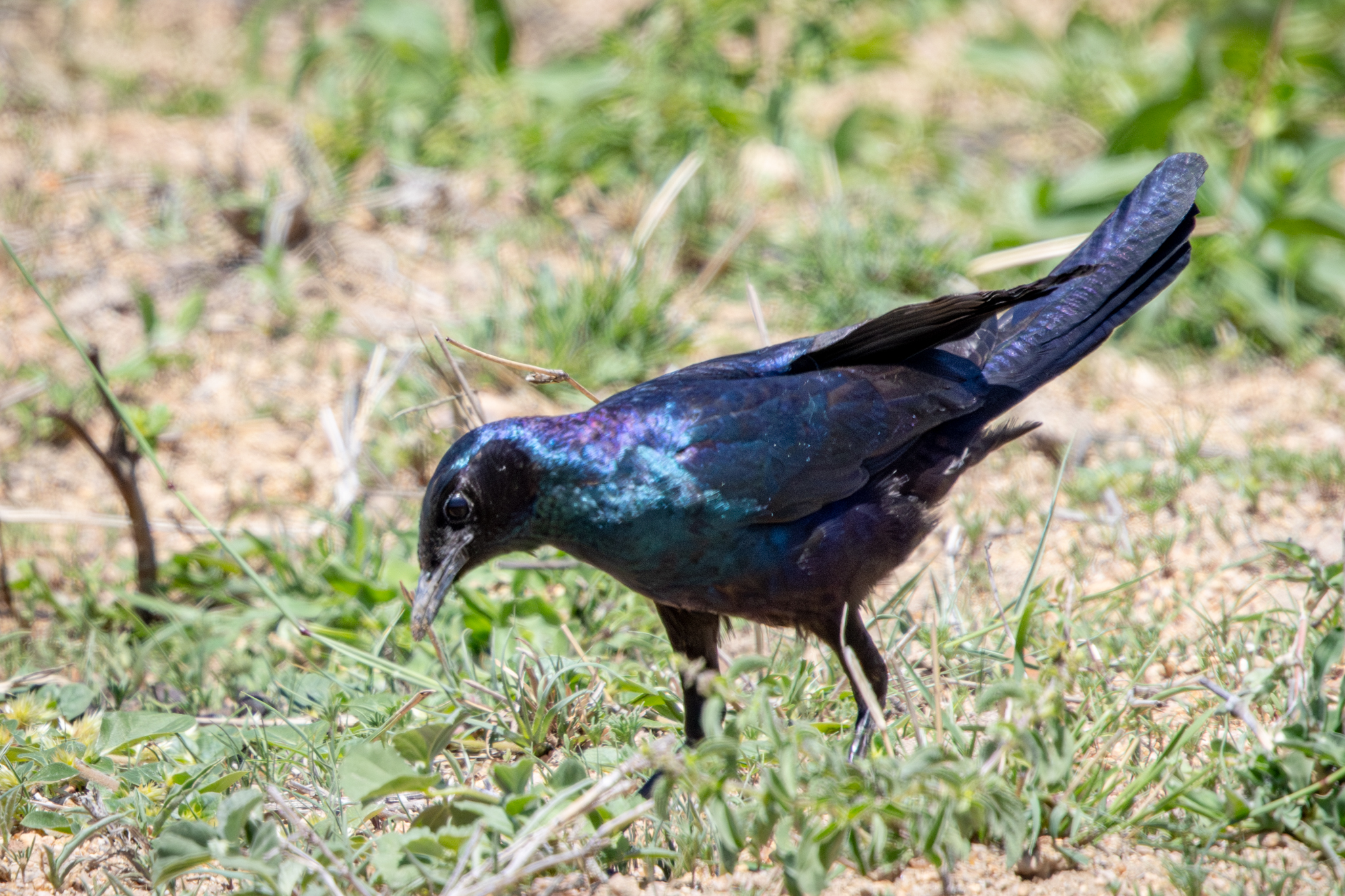 The Burchell’s Starling was entirely black but the sun shining off its iridescent feathers made it look purple and blue as well.