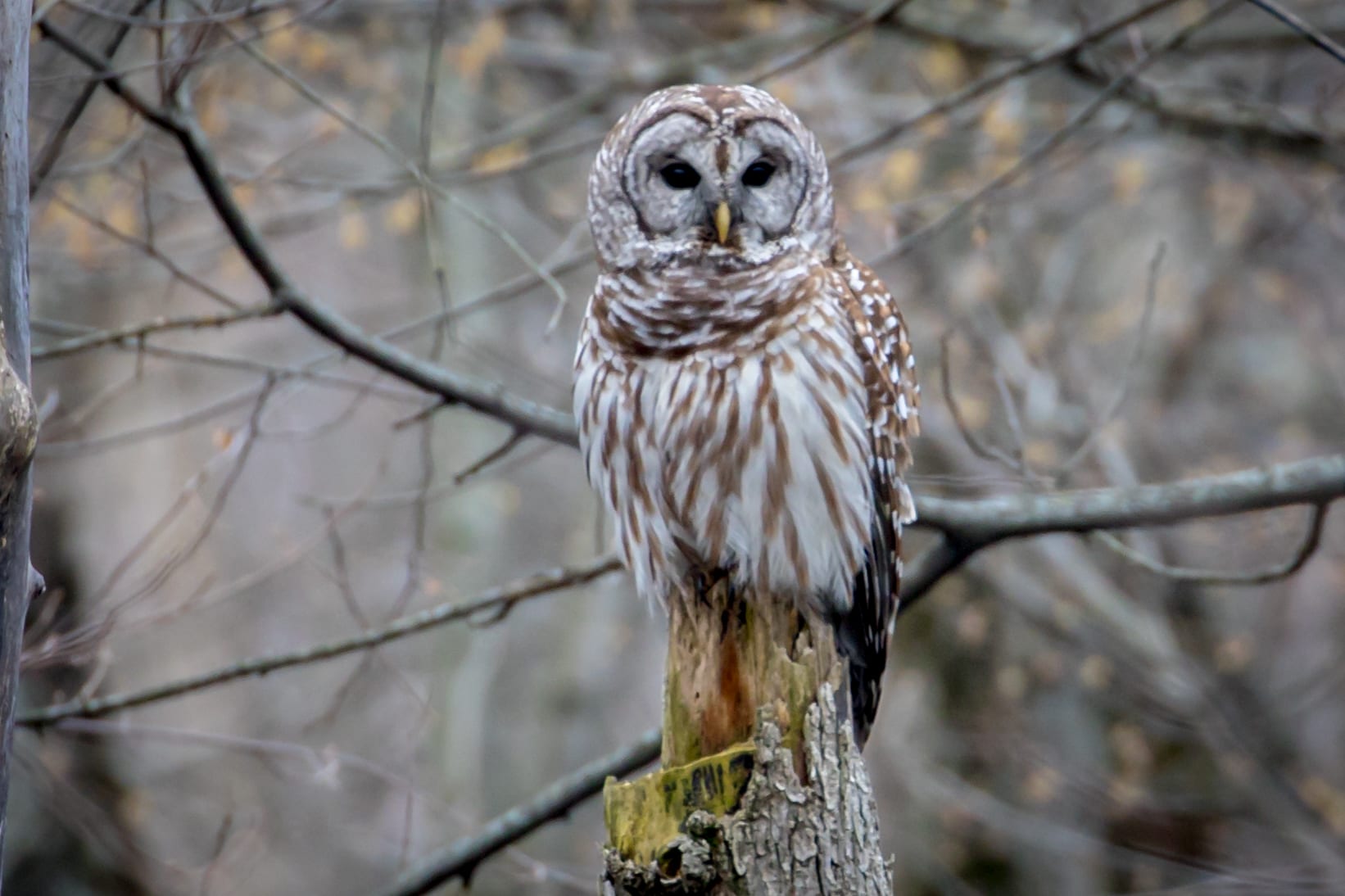 So I saw this owl one morning and went home and told my wife. At dusk she said, “So show me the owl.” I scoffed that it would be highly unlikely to find it again but off we went. Sure enough we found not one, but two of them in the same vicinity.