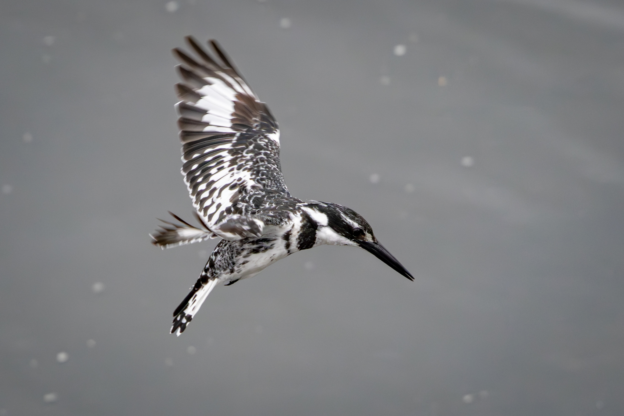 This Pied Kingfisher hovers over the Crocodile River in search of prey just below the surface. Once found, it will dive down into the water.