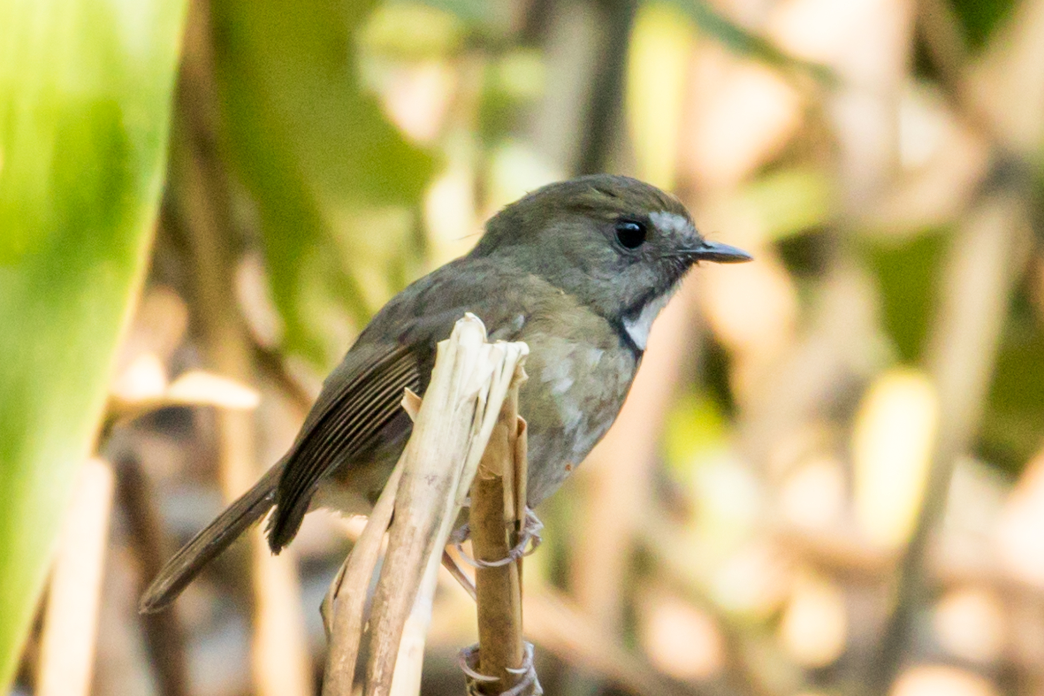 Here you see the white patch on the throat of a White-gorgeted Flycatcher. Observed from behind a blind after our guide sprinkled mealworms on the ground.