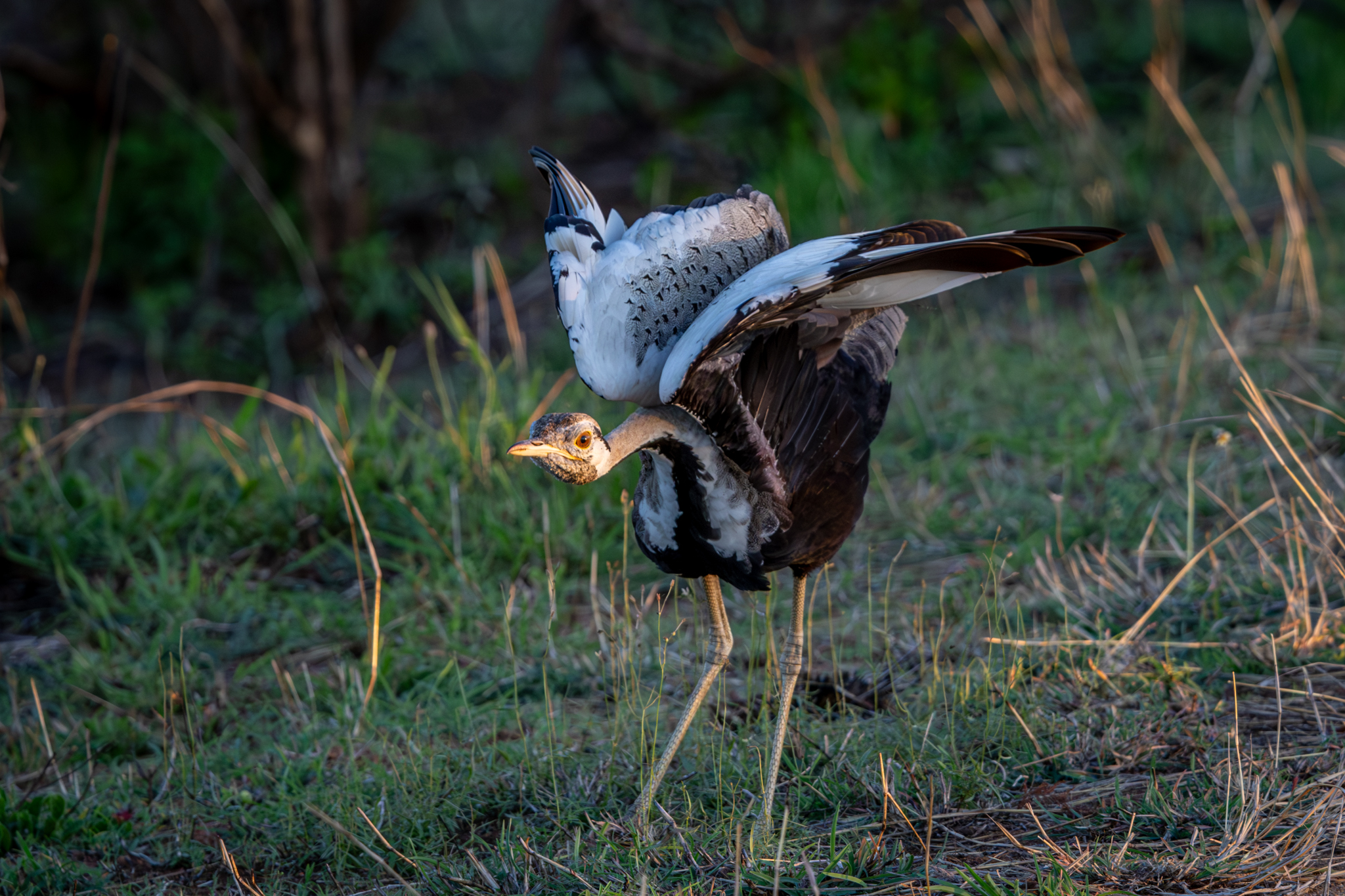 This Black-bellied Bustard shook and stretched is wings before settling down.
