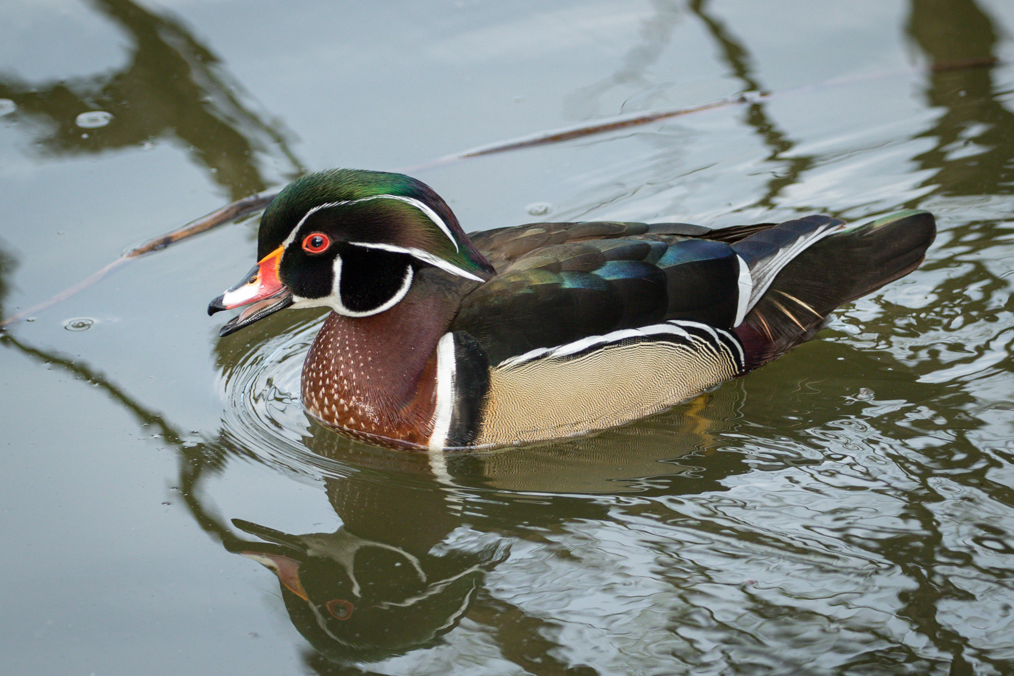 This Wood Duck had no fear as it swam quite close in a pond in downtown Chicago.