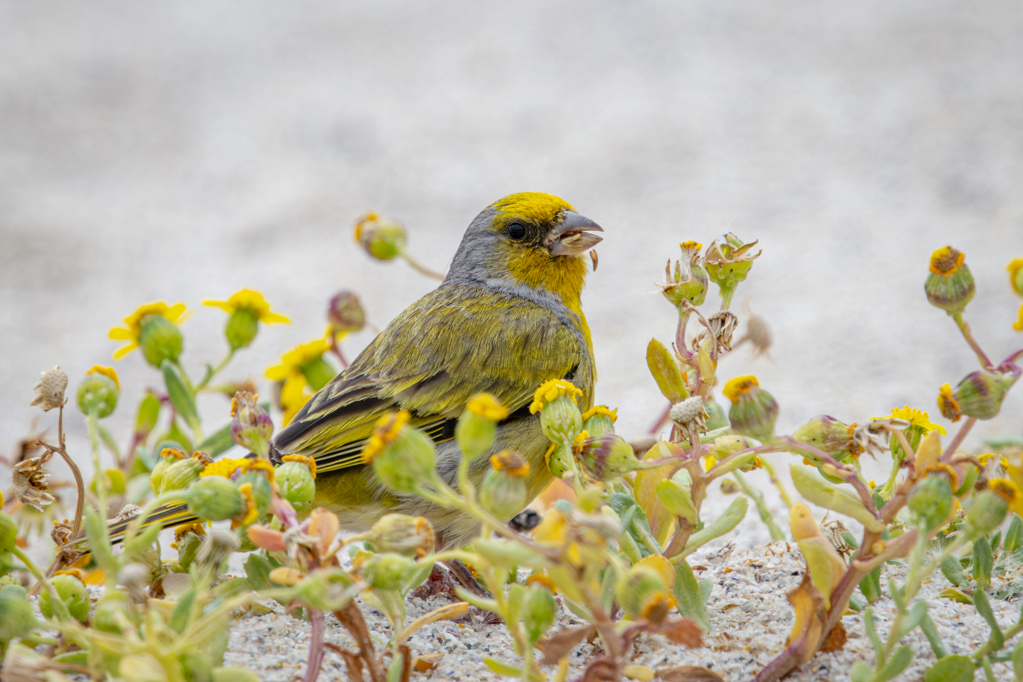 Another commonly seen bird was the Cape Canary. Here is our Lifer foraging on vegetation on the beach.