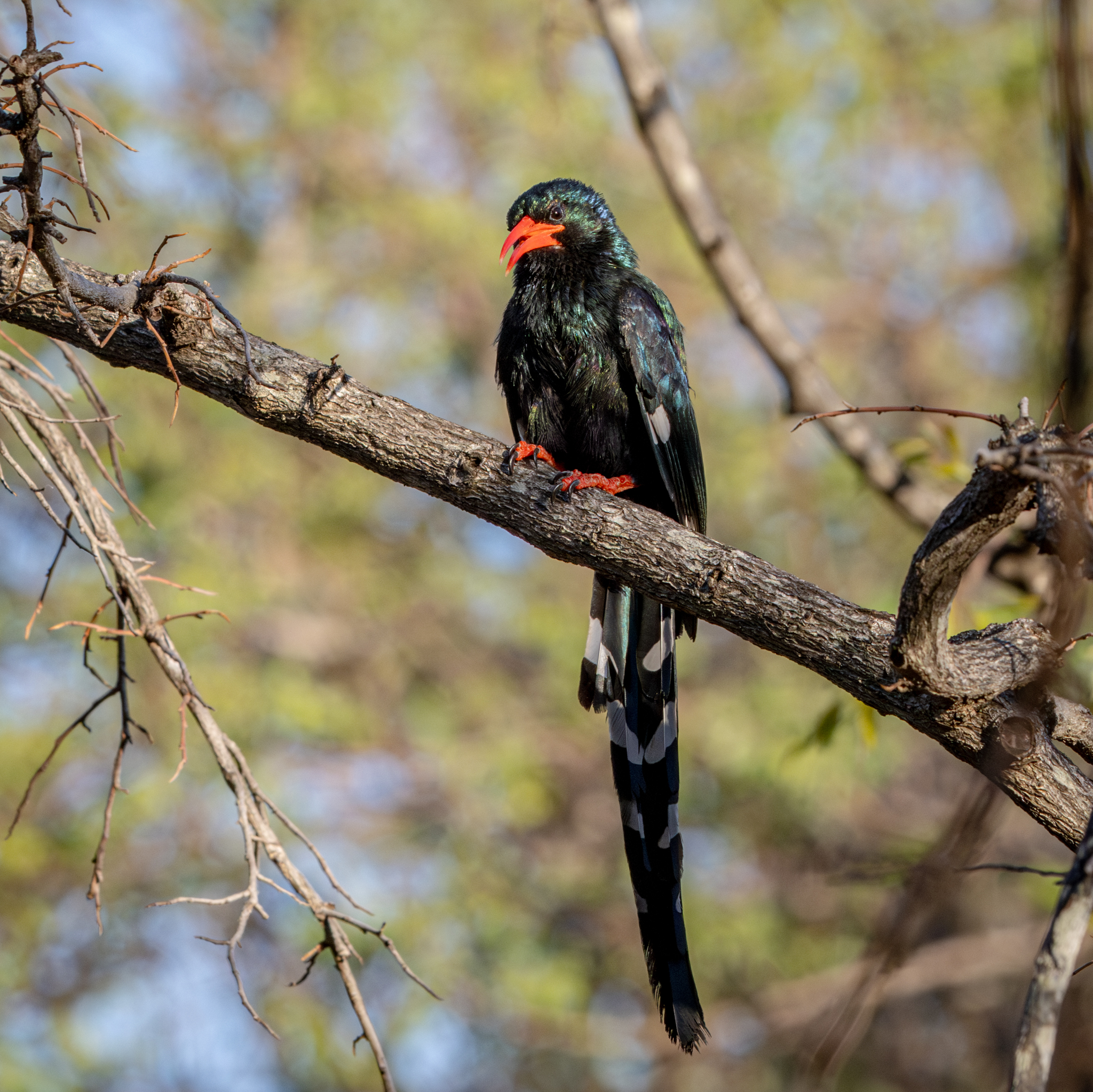 The Green Woodhoopoe catches the early morning light within our compound at Berg-en-Dahl.