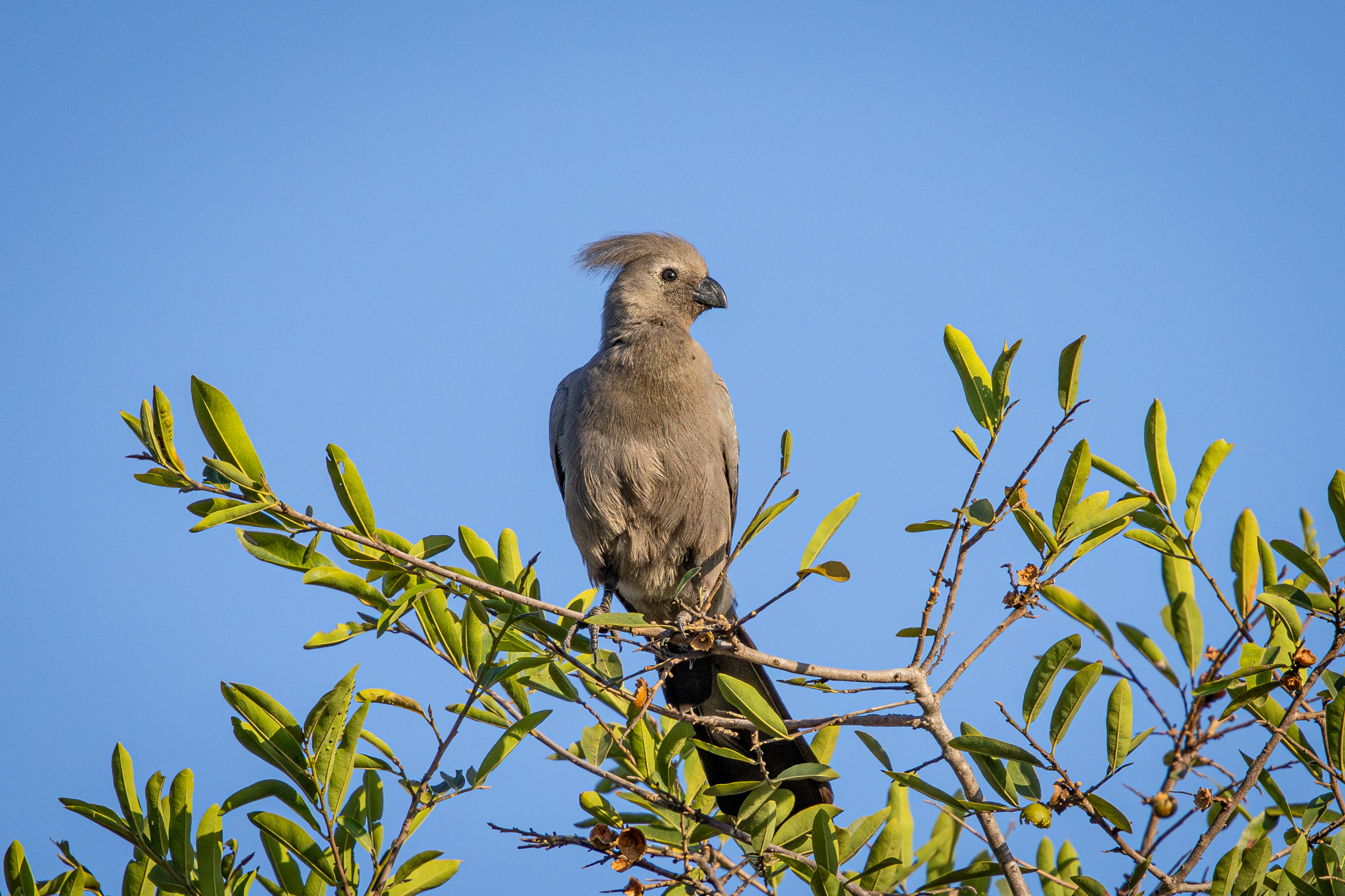 This Gray Go-Away-Bird perched right up there looking for some food to start the day.