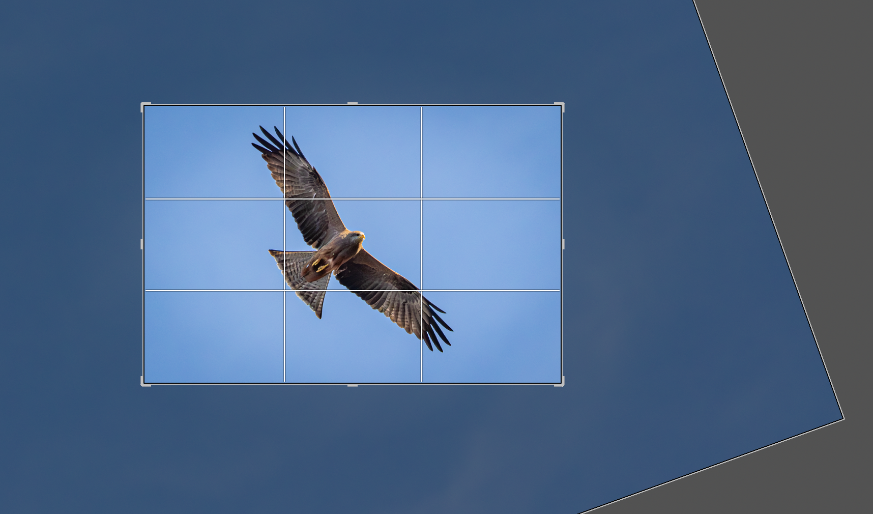 Of course this wouldn’t work if the bird was near the horizon, as it would show the altered angle. In the air however, such a simple alteration allows the artist perform a tight crop but still leaves ample space all around the bird.